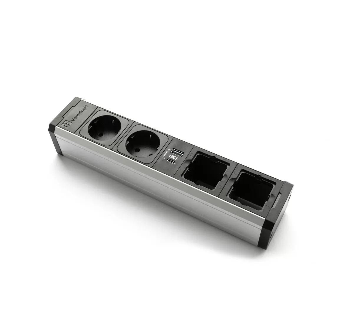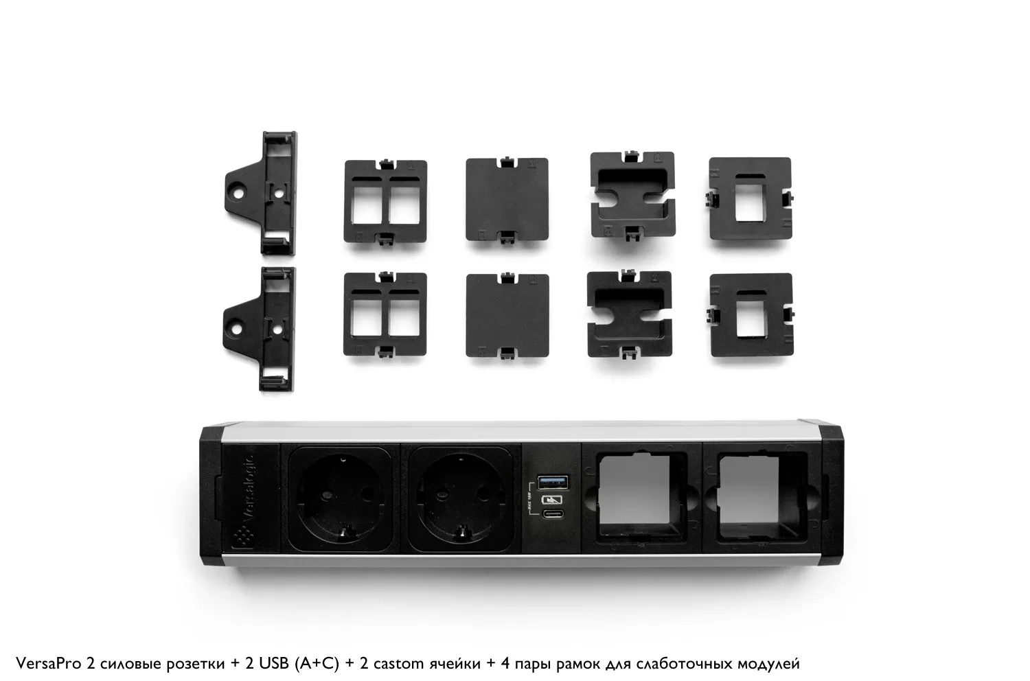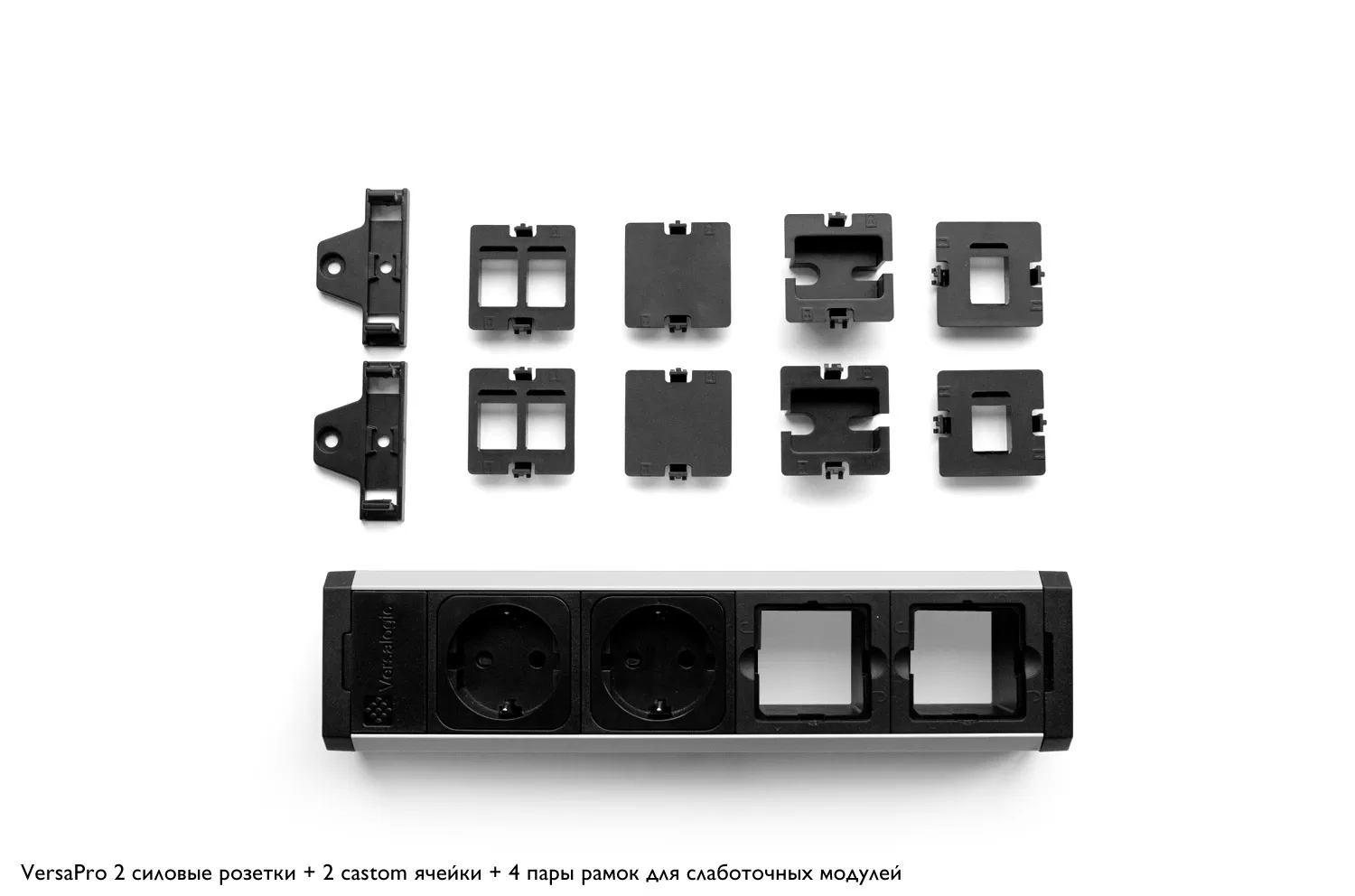 ВЕРСАПРО/VERSAPRO Розеточный блок АЛЮМИНИЙ/ЧЕРНЫЙ