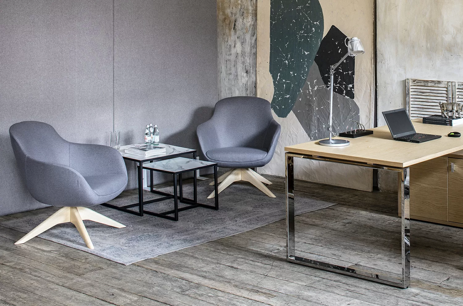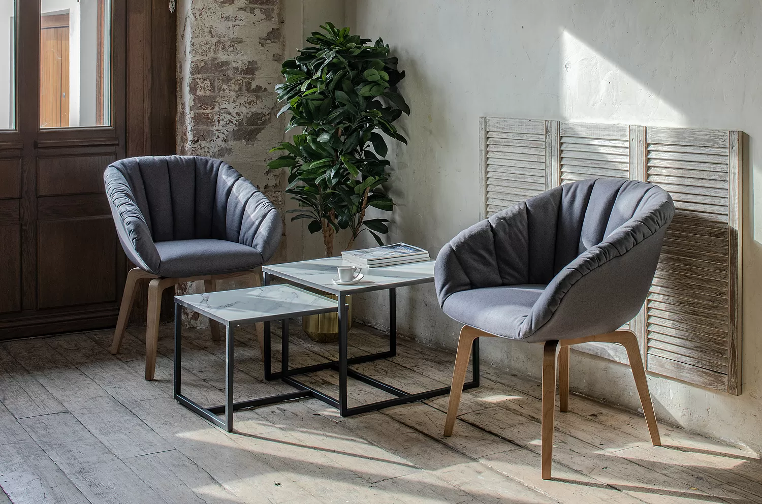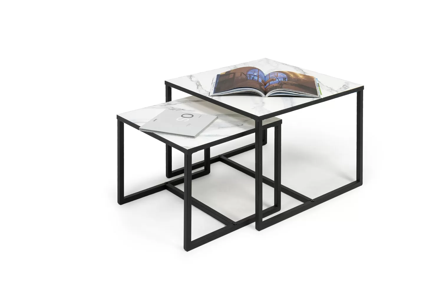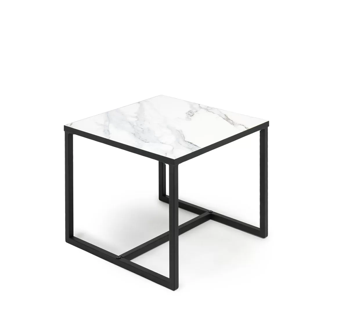 Кофейные столы Calipso позволяют гибко организовывать пространство и подчеркивать индивидуальность интерьера. Его база выполнена из прочной квадратной металлической трубы сечением 20х20 мм с черным покрытием, что придает конструкции строгий индустриальный характер. Столешница изготовлена из ЛДСП с покрытием под мрамор — в светлых тонах с естественными серыми прожилками. Доступен в двух размерах для создания комбинаций, что позволяет гибко организовывать пространство.
