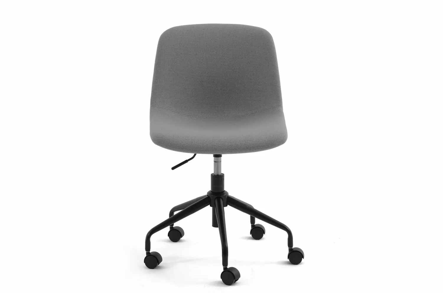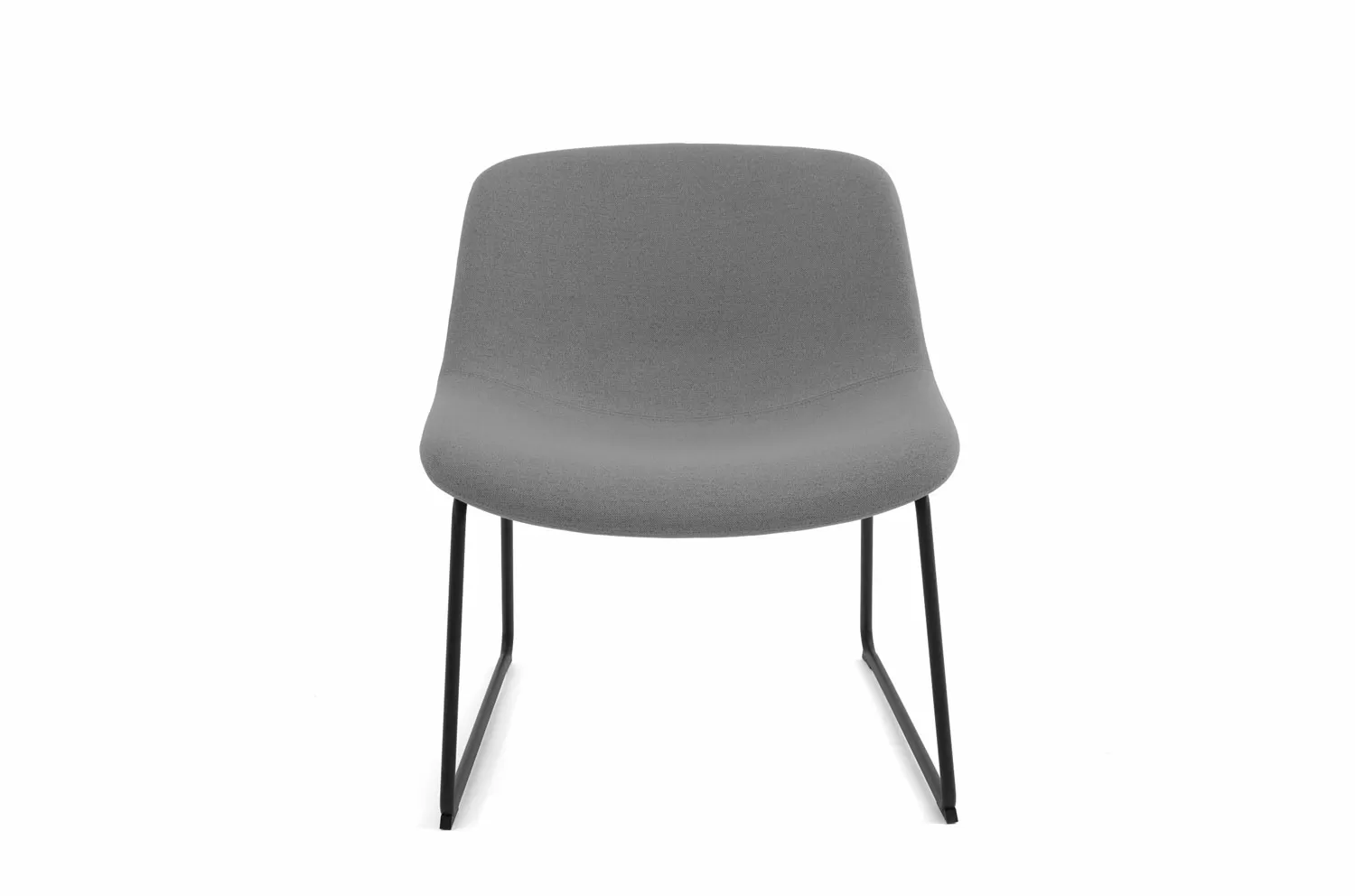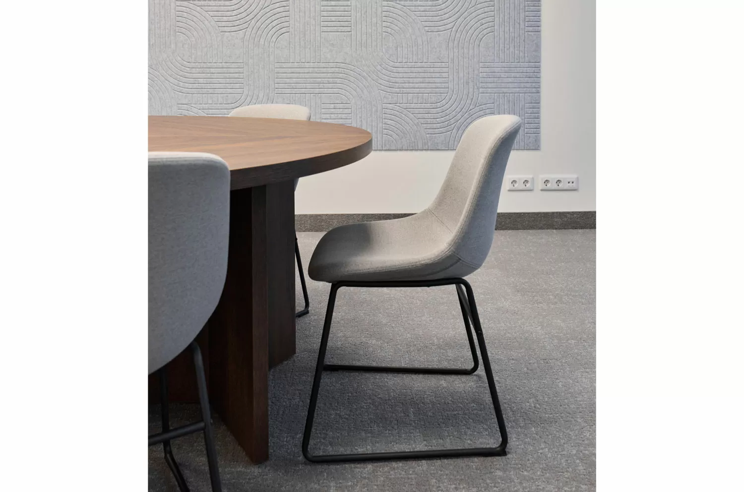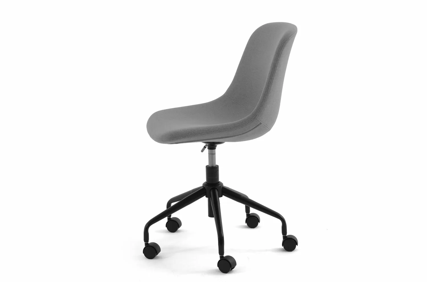 Минималистичное посетительское кресло с лаконичной формой и плавными обтекаемыми линиями, идеально вписывающееся в современные офисные, представлено на двух базах — на салазках из черного металла для устойчивости и элегантности в зонах ожидания, а также поворотной пятилучевой основой на колесиках для свободы перемещения в переговорных или рабочих зонах; обитое ткань сиденье с каркасом из ППУ обеспечивает комфорт и долговечность, а строгий дизайн без лишних деталей подчеркивает функциональность и стиль.