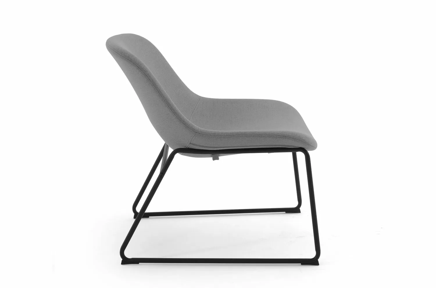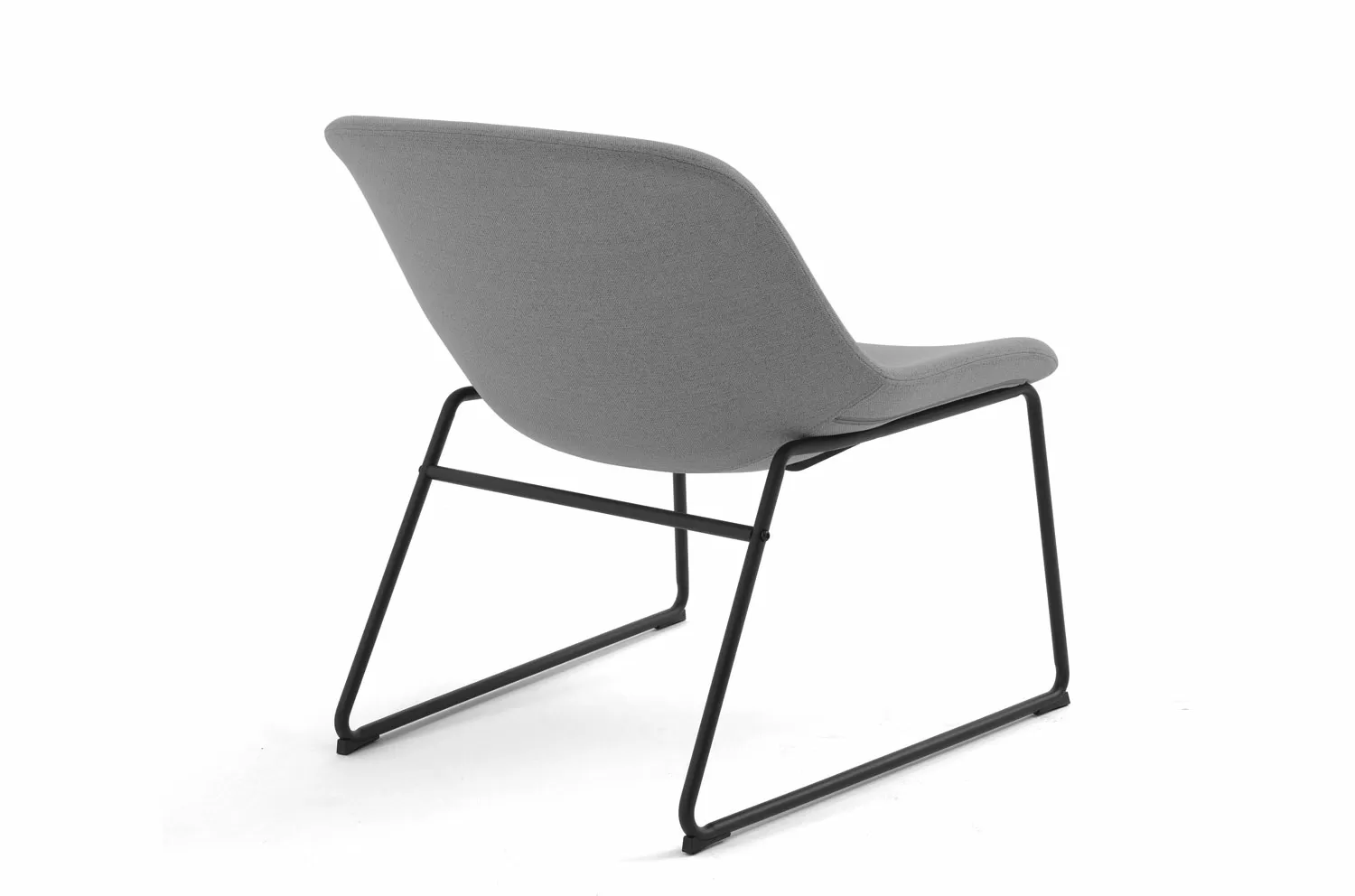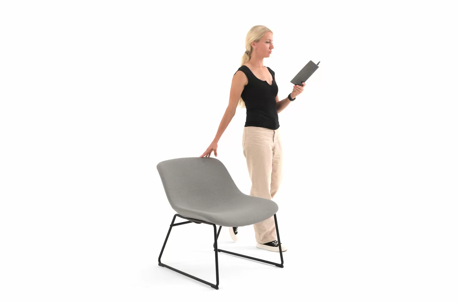 Минималистичное посетительское кресло с лаконичной формой и плавными обтекаемыми линиями, идеально вписывающееся в современные офисные, представлено на двух базах — на салазках из черного металла для устойчивости и элегантности в зонах ожидания, а также поворотной пятилучевой основой на колесиках для свободы перемещения в переговорных или рабочих зонах; обитое ткань сиденье с каркасом из ППУ обеспечивает комфорт и долговечность, а строгий дизайн без лишних деталей подчеркивает функциональность и стиль.