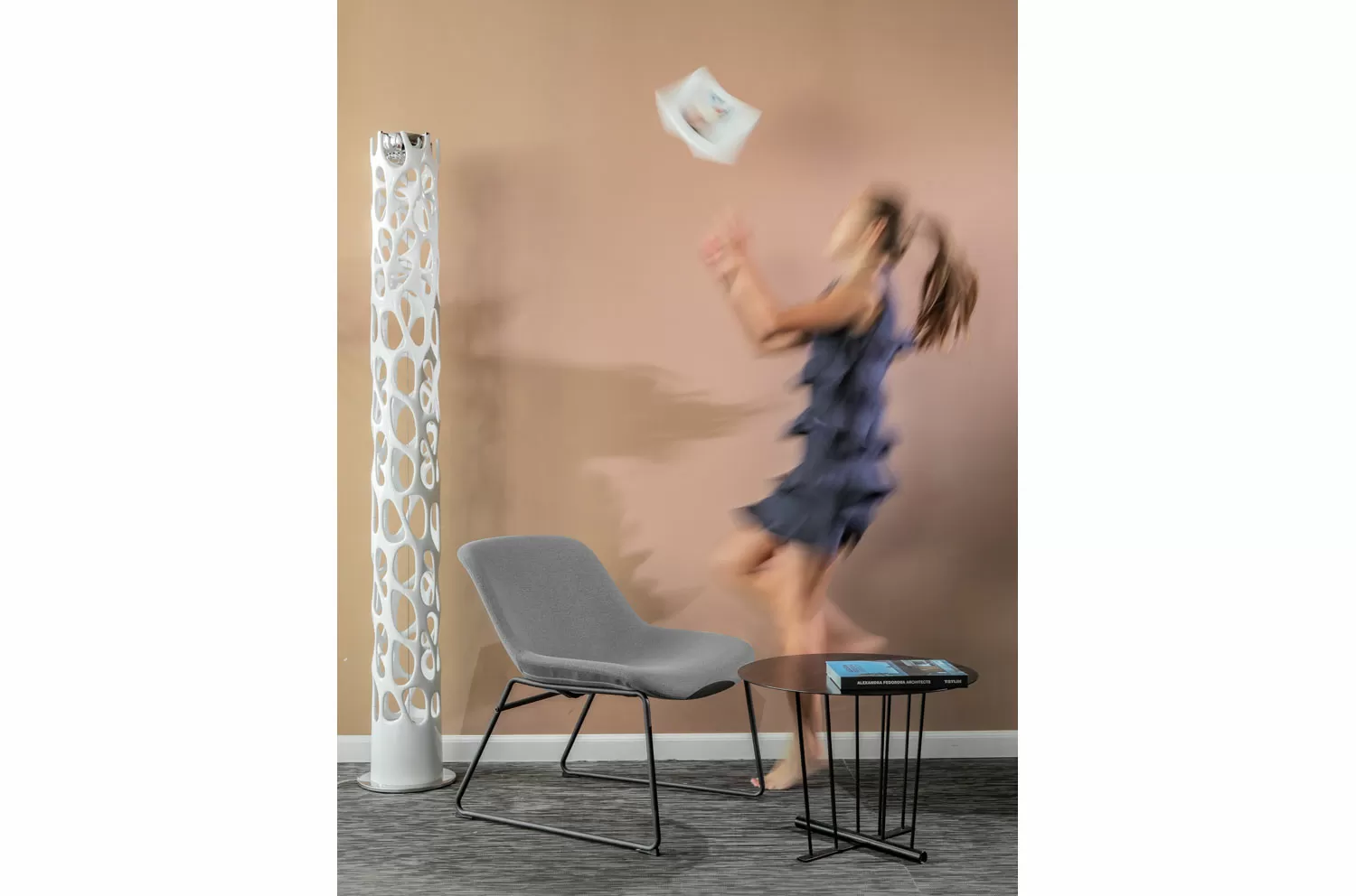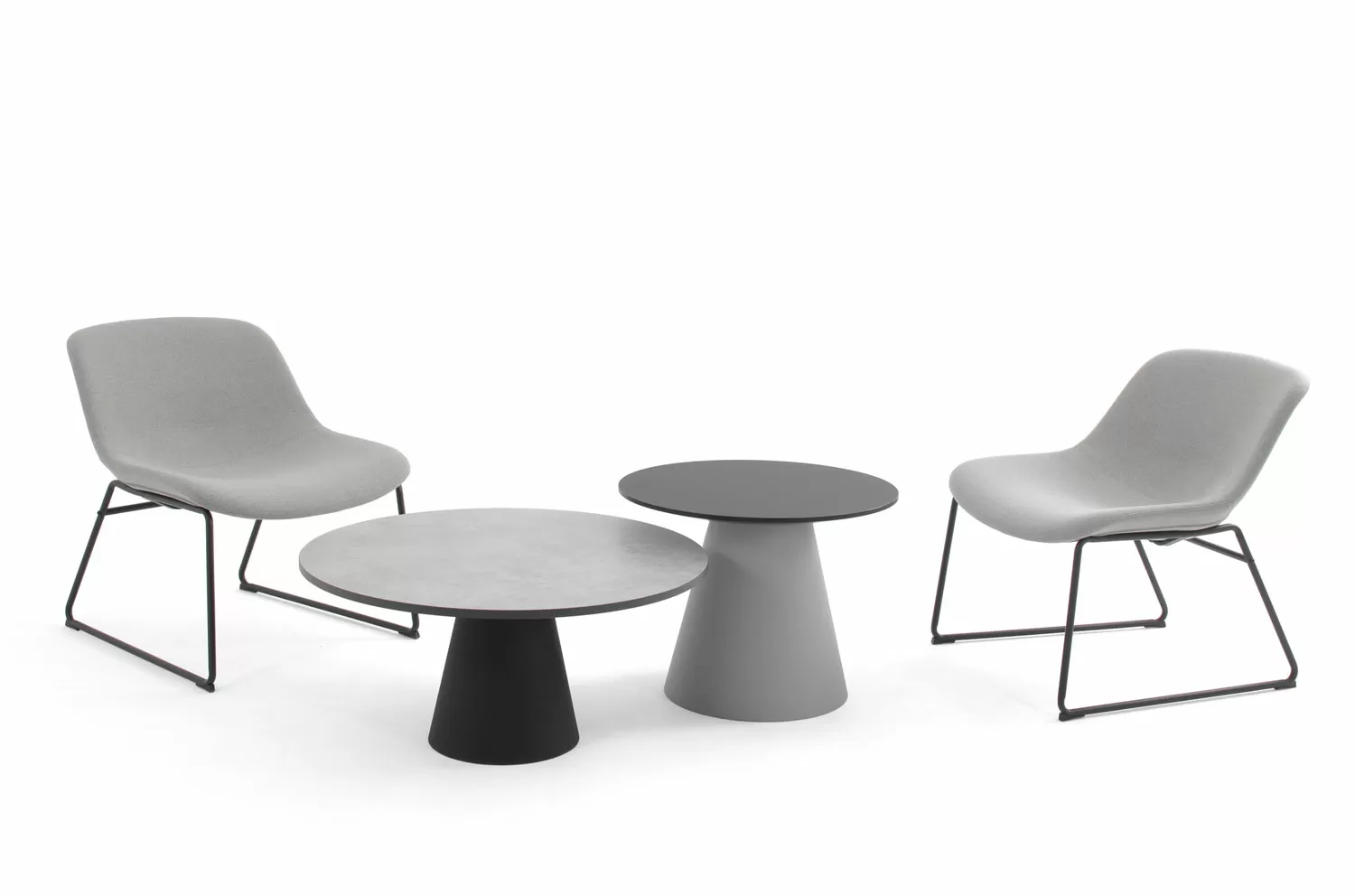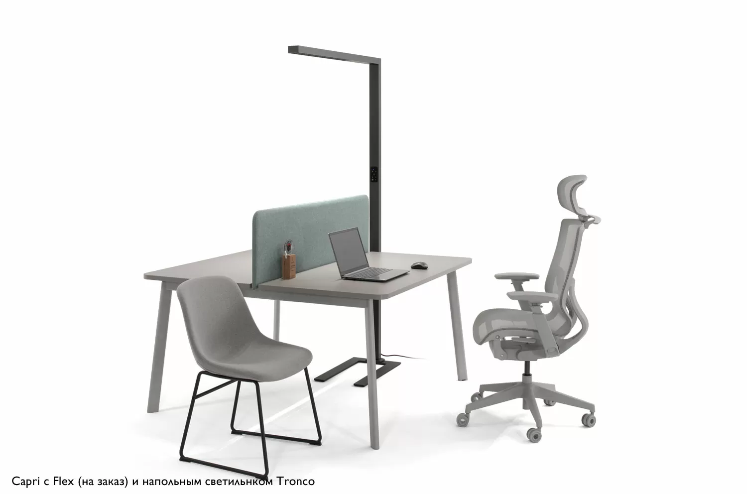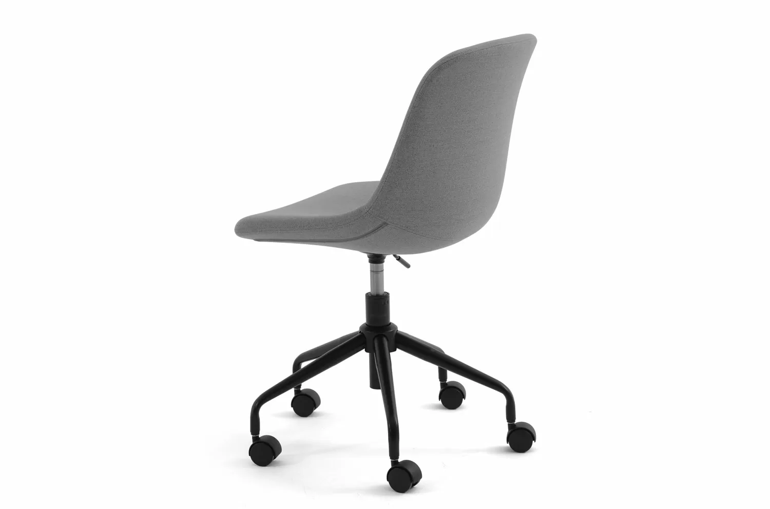 Минималистичное посетительское кресло с лаконичной формой и плавными обтекаемыми линиями, идеально вписывающееся в современные офисные, представлено на двух базах — на салазках из черного металла для устойчивости и элегантности в зонах ожидания, а также поворотной пятилучевой основой на колесиках для свободы перемещения в переговорных или рабочих зонах; обитое ткань сиденье с каркасом из ППУ обеспечивает комфорт и долговечность, а строгий дизайн без лишних деталей подчеркивает функциональность и стиль.
