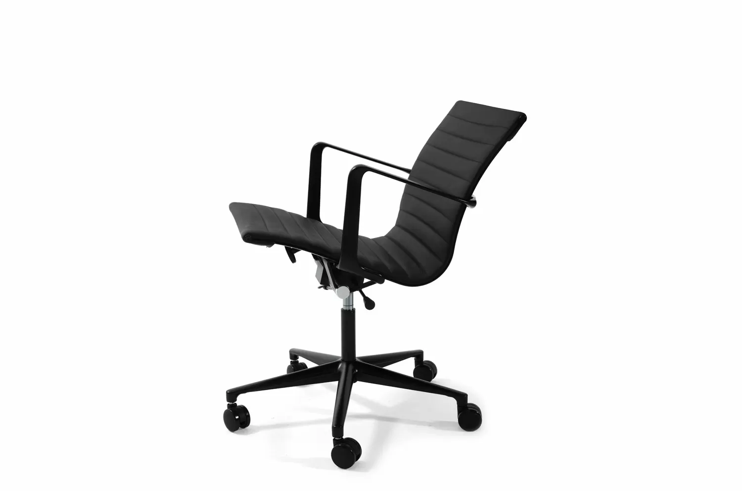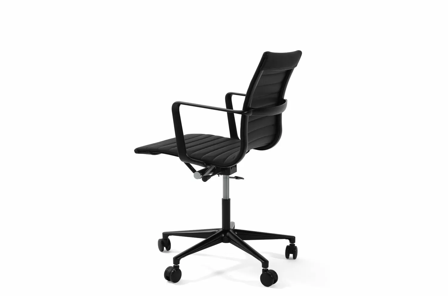 Конференц-кресло Sharp в экокоже — практичное решение для офисов и переговорных комнат. Устойчивая к износу и легко очищаемая обивка обеспечивает долговечность в условиях интенсивного использования. Эргономичная форма спинки и сиденья с аккуратной прострочкой бережно поддерживает естественный изгиб позвоночника, снижая нагрузку на спину, шею и плечи. Прочный каркас на пятилучевой колесной базе гарантирует стабильность и свободу перемещения.