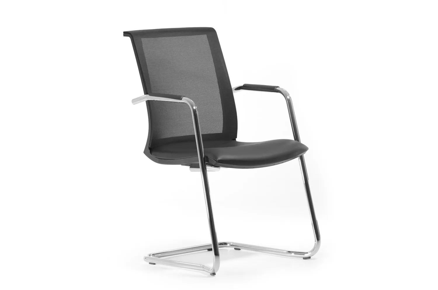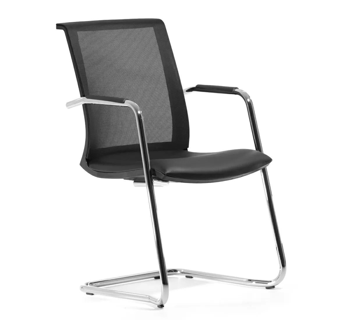 СКИН/SKIN Кресло на полозьях, кожа ЧЕРНЫЙ/ХРОМ