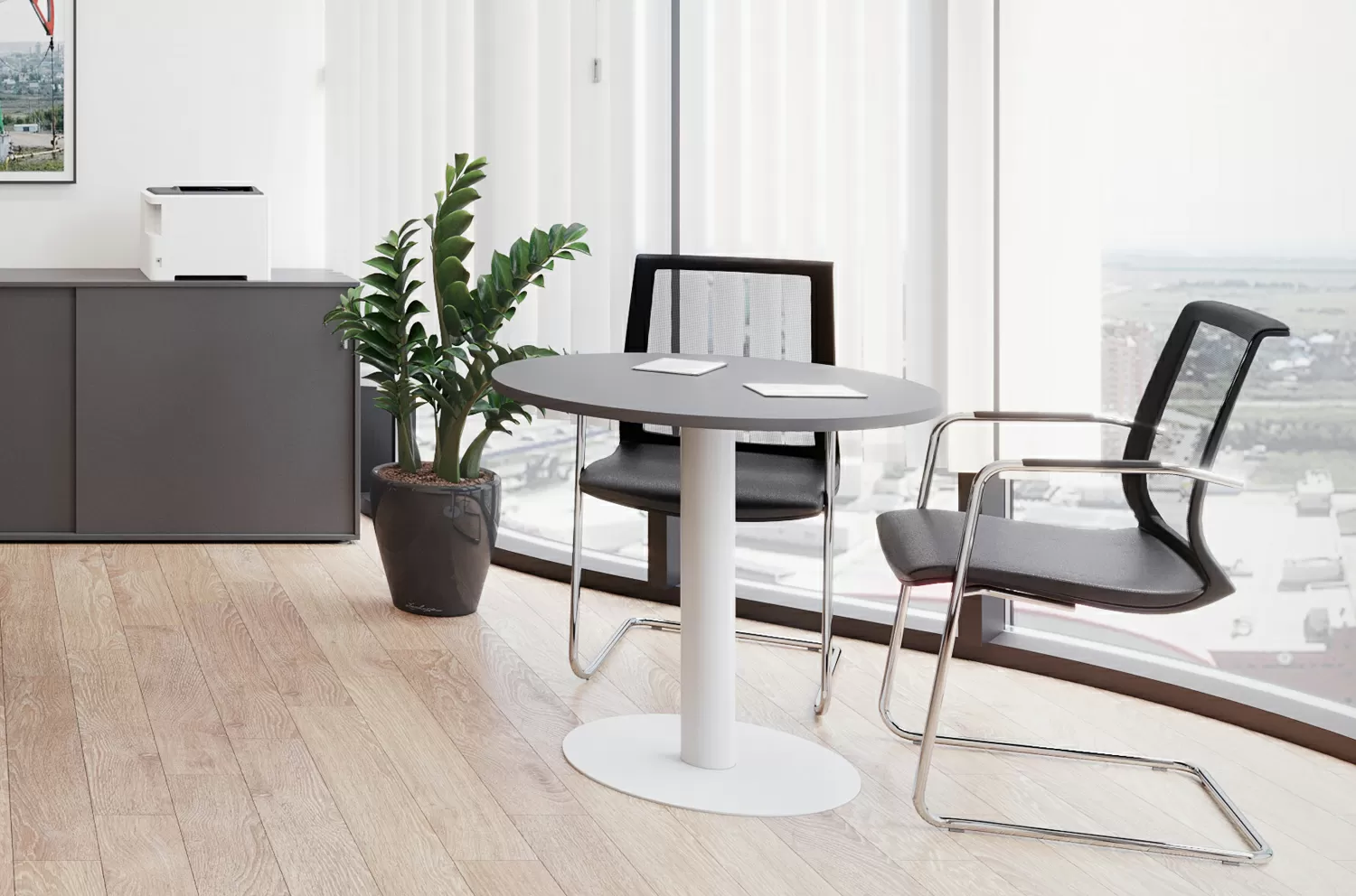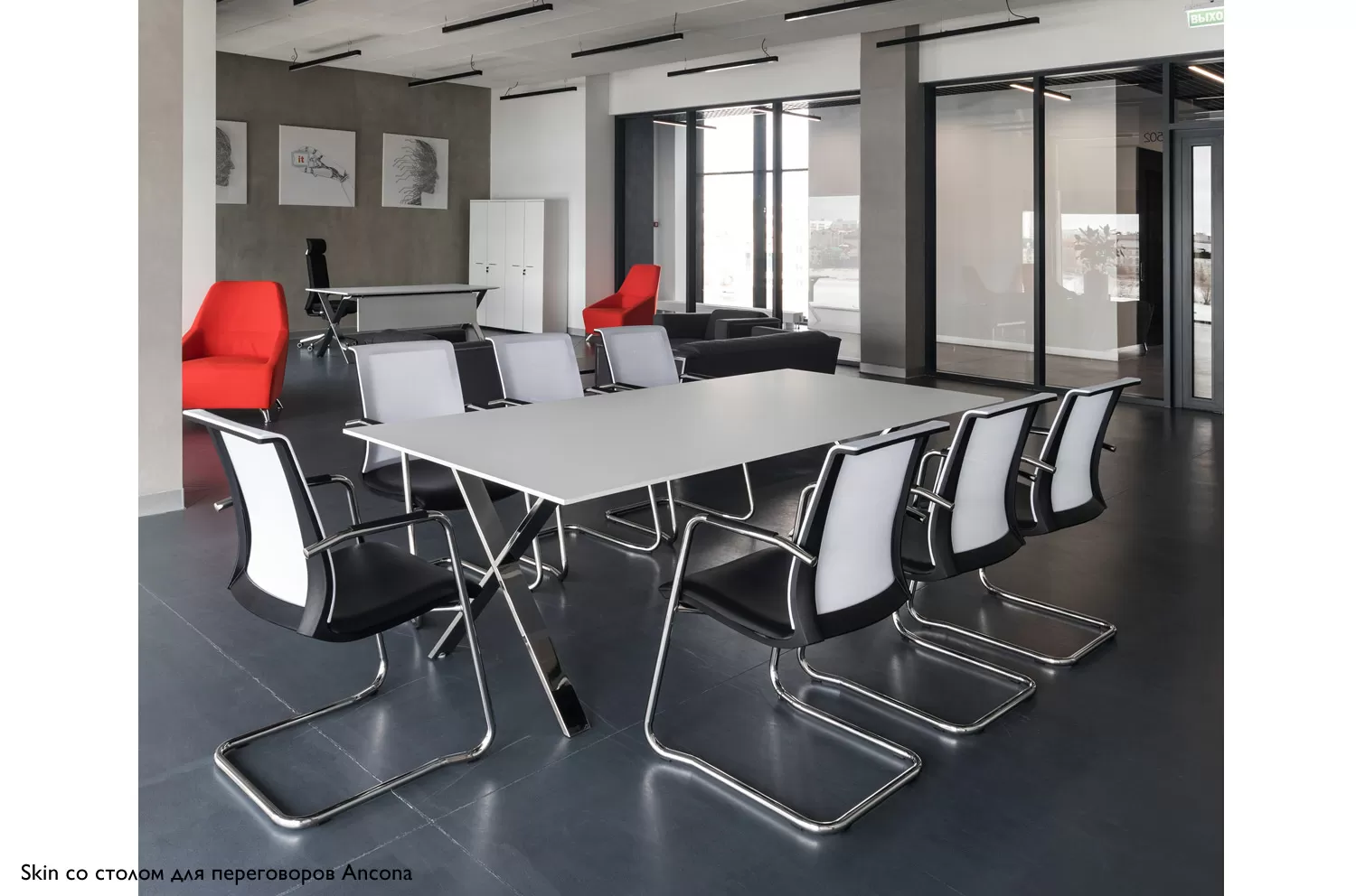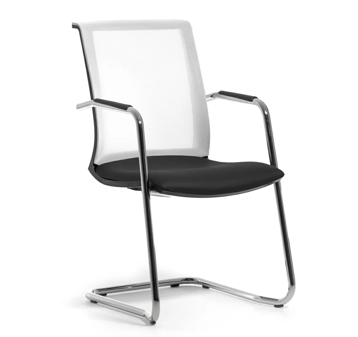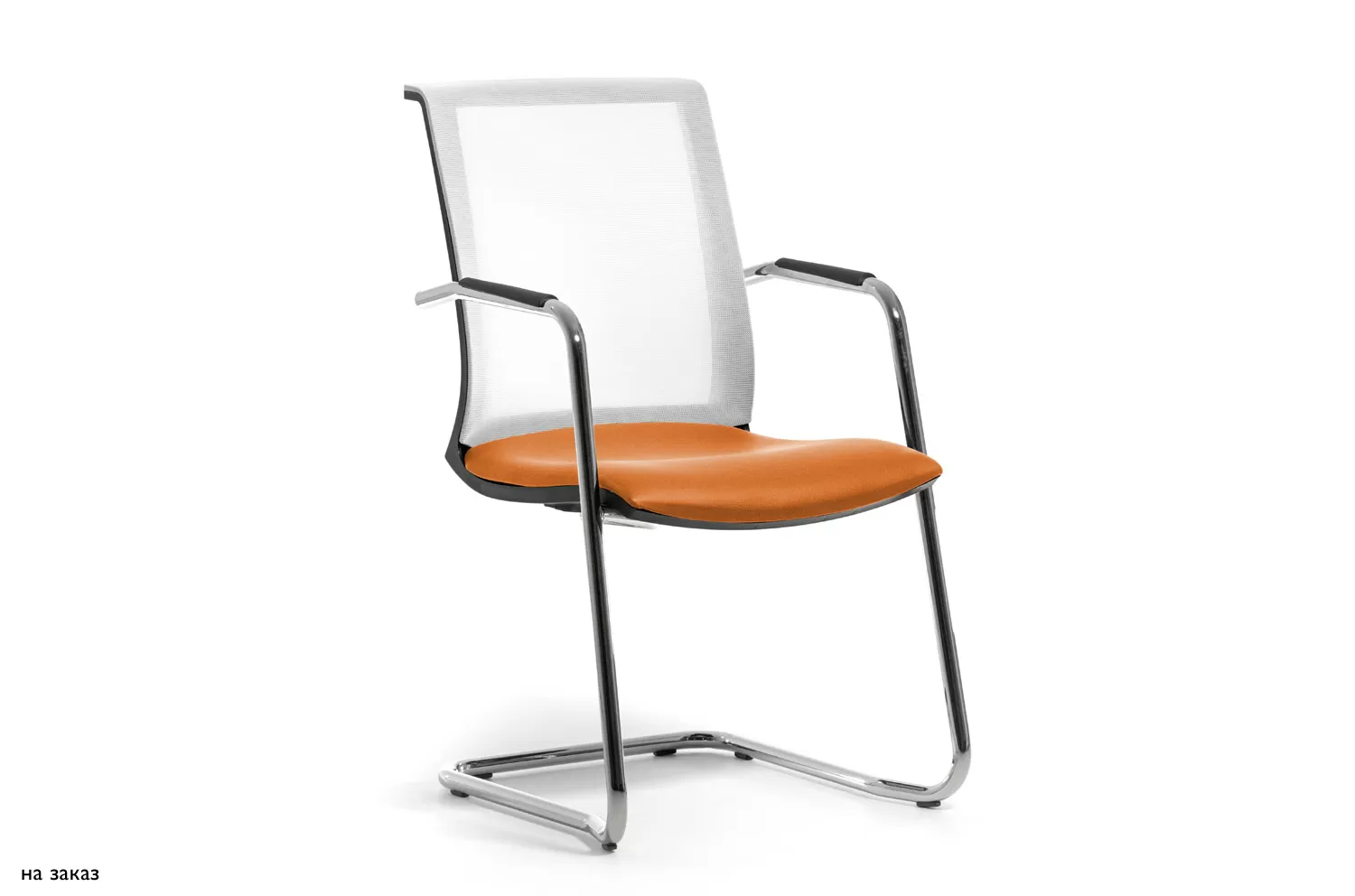 СКИН Б/SKIN W Кресло на полозьях,кожа ЧЕРНЫЙ/БЕЛЫЙ/ХРОМ