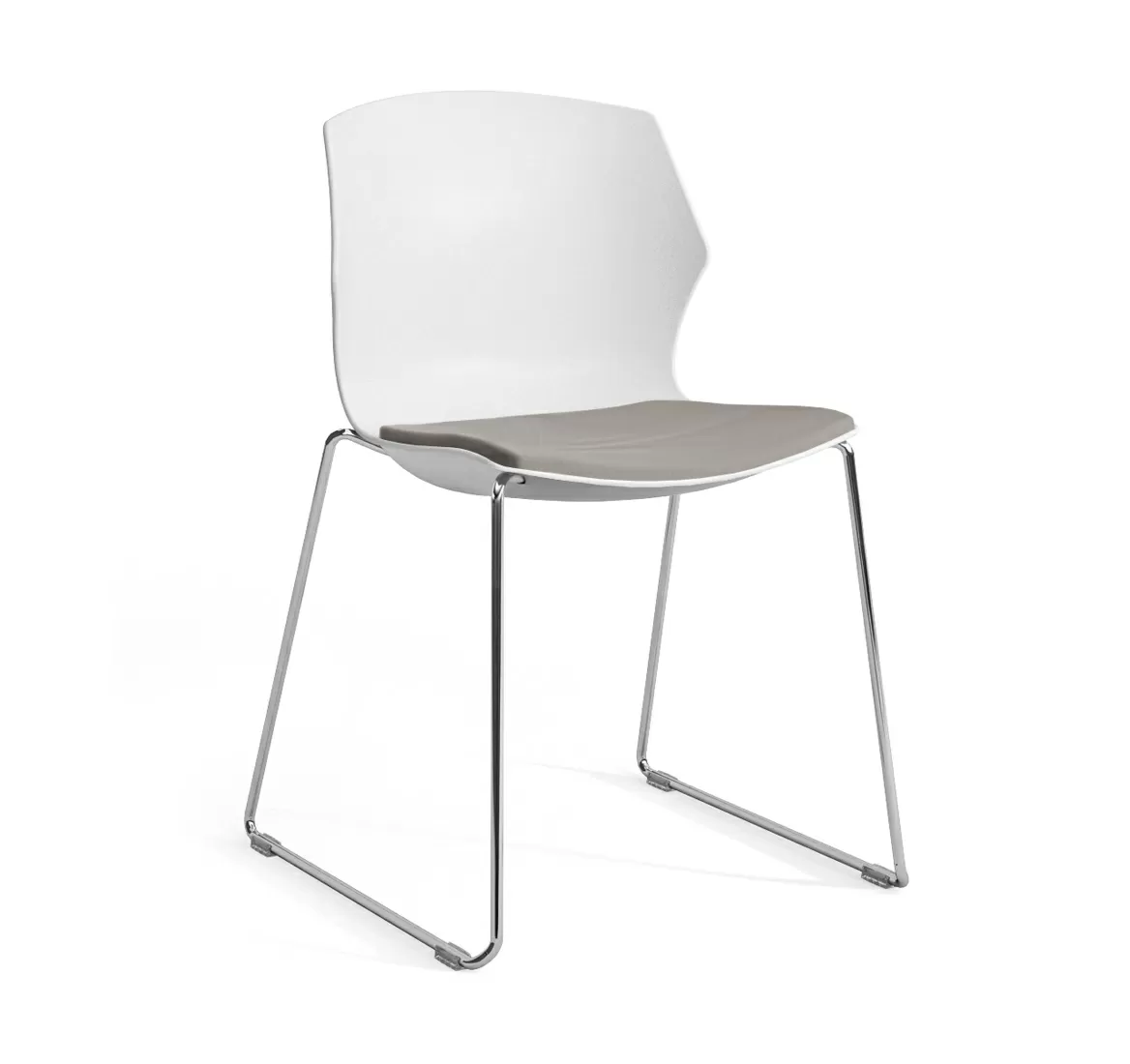 СОЛЕ/SOLE Кресло пластик,сиденье тк СЕРЫЙ/БЕЛЫЙ/ХРОМ