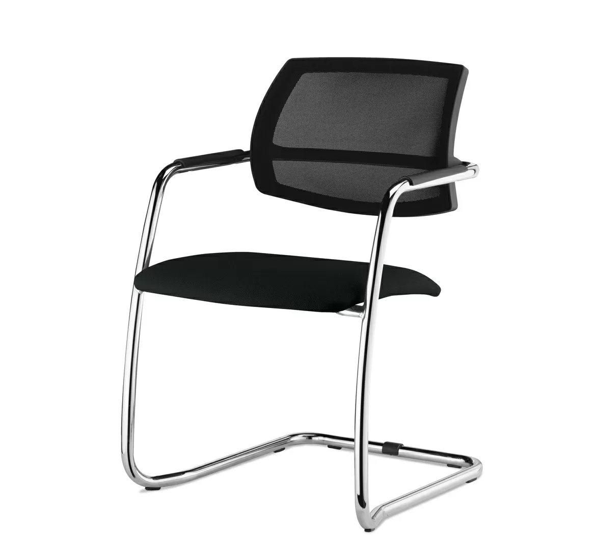 УРБАН-СЕТКА/URBAN-MESH Кресло полозья ткан ЧЕРНЫЙ/ХРОМ