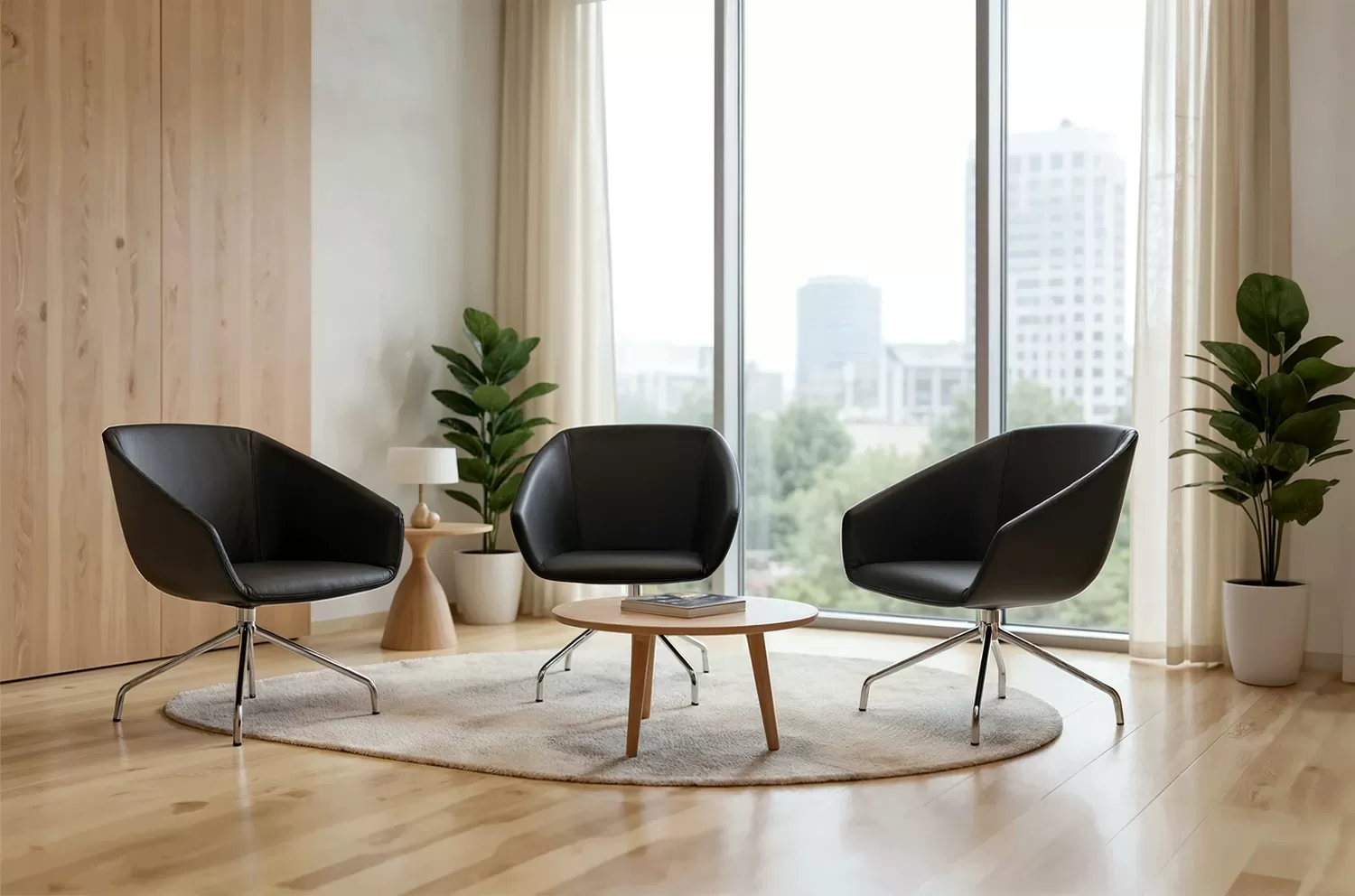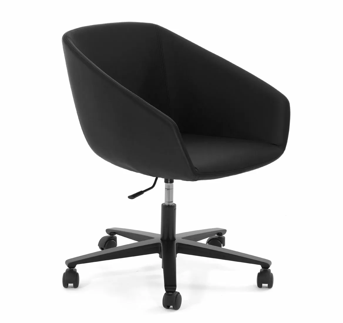 АЛМА/ALMA Кресло посет., 5-луч ЧЕРНЫЙ/КОЖА