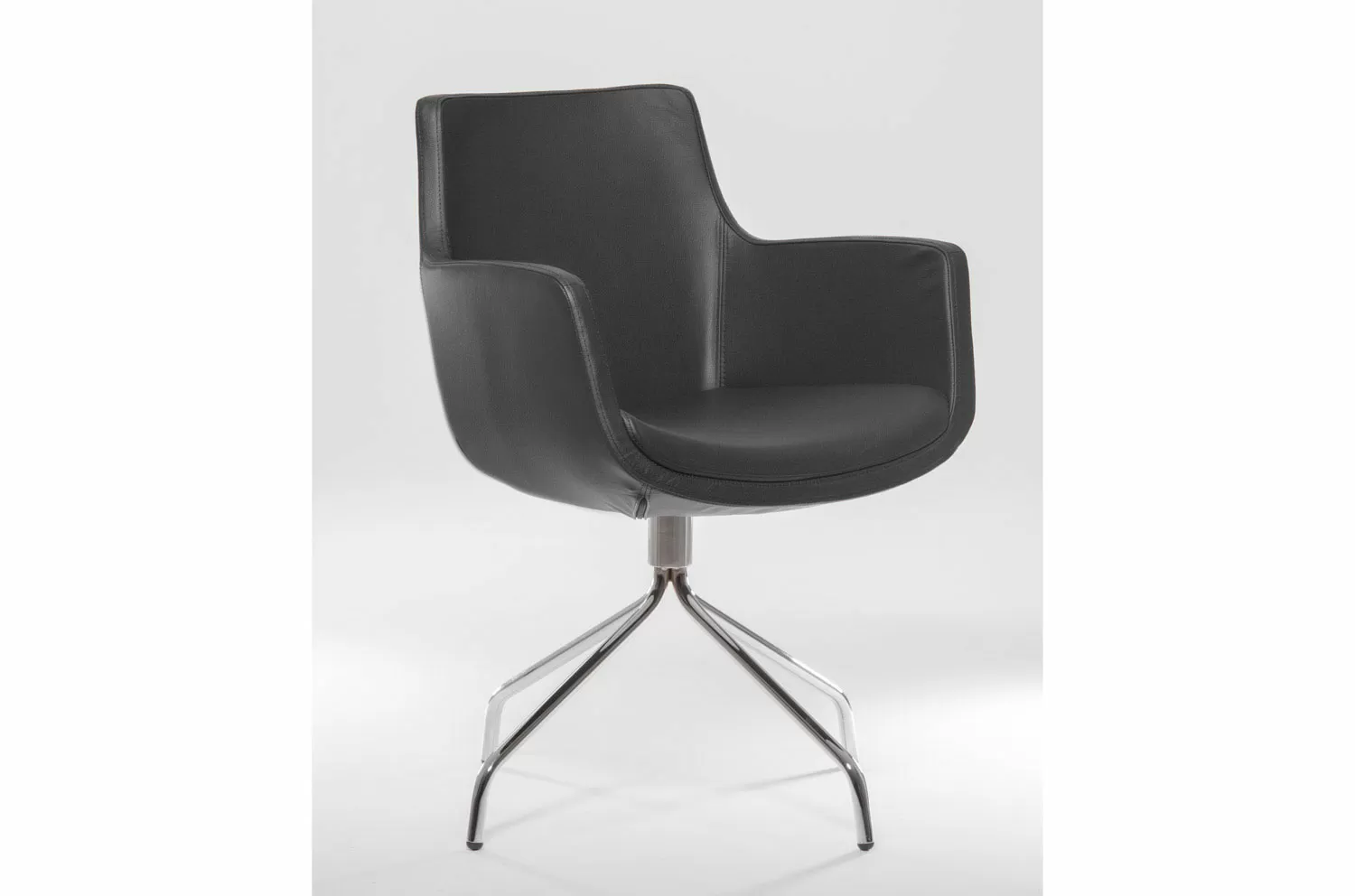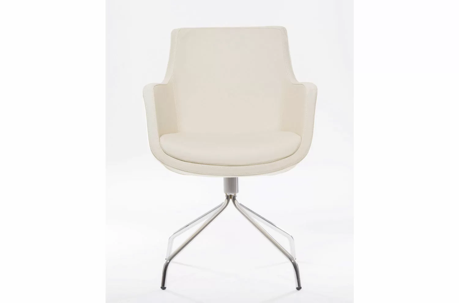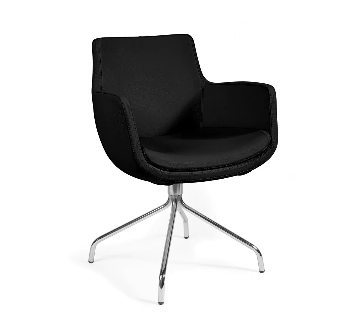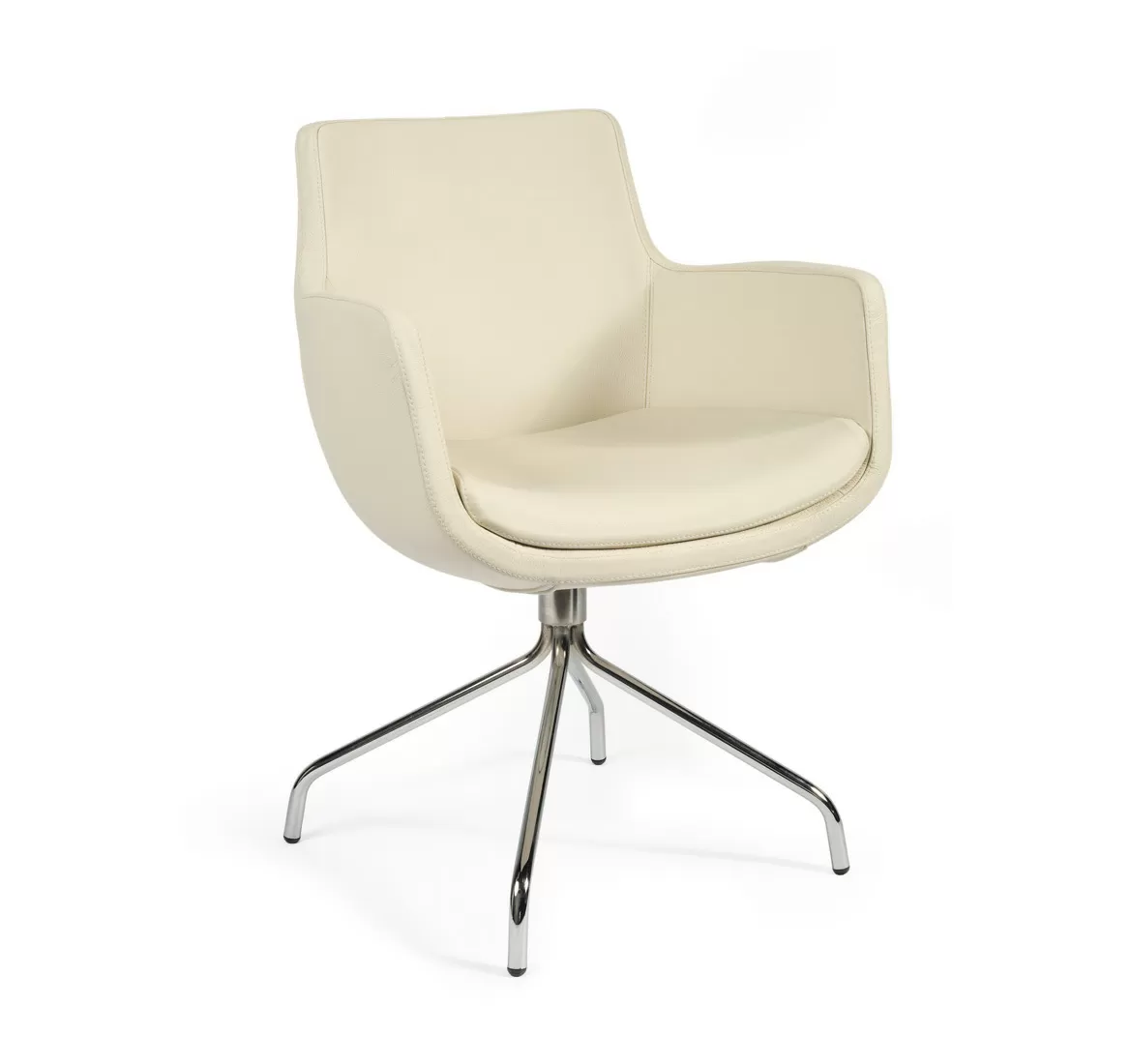 Посетительское кресло Felicia с эргономичной обтекаемой формой, обитое бежевой или черной кожей, установлено на хромированную 4-лучевую крестовину. Сиденье из пенополиуретана поддерживает естественную позу тела даже при длительном использовании. Под заказ возможна обивка в любых материалах. Идеально подходит для современных офисов и переговорных комнат, сочетая комфорт, функциональность и лаконичный дизайн.