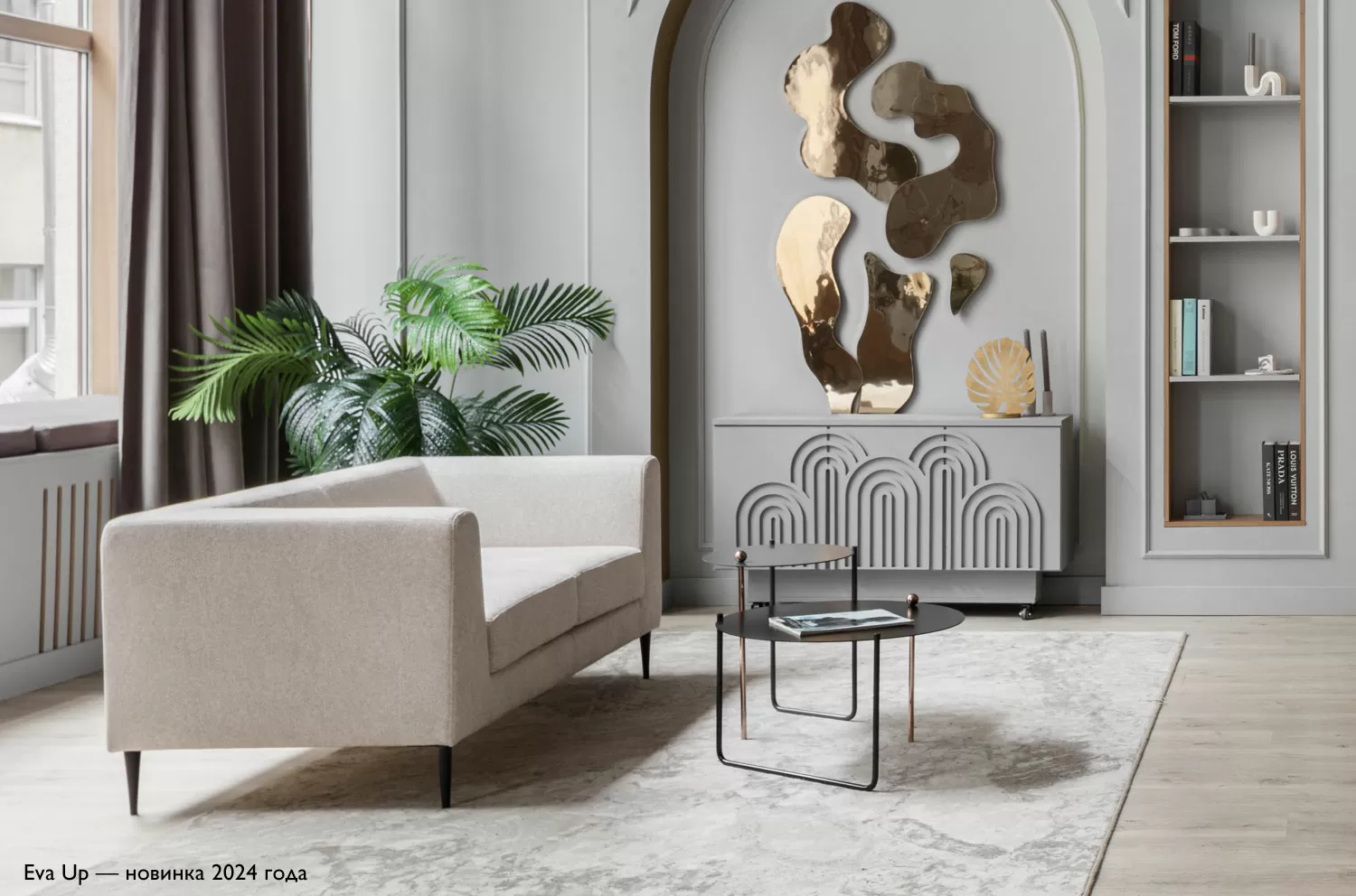 ЕВА АП/EVA UP Диван 2мест, иск.кожа БЕЖЕВЫЙ/ХРОМ