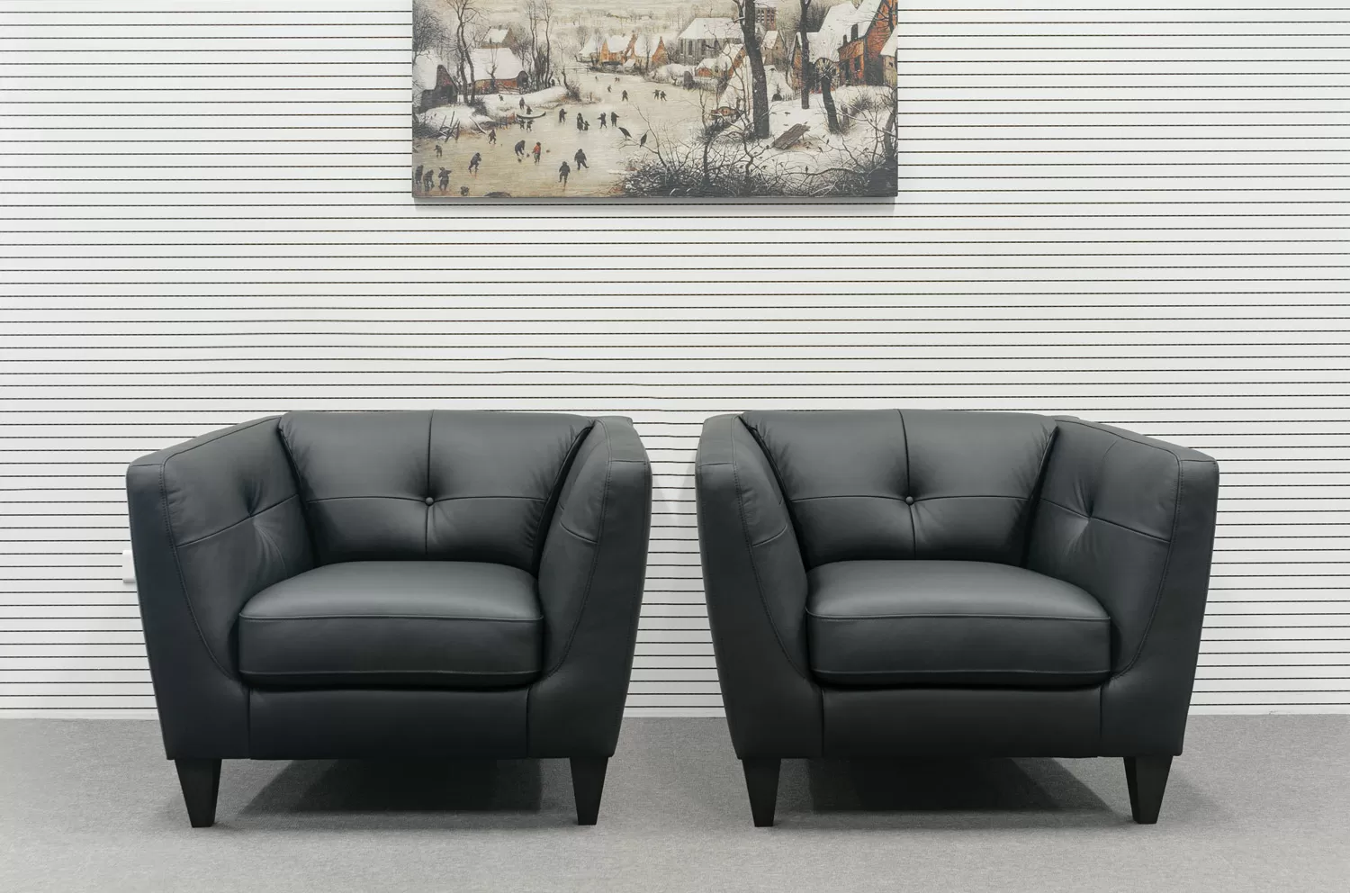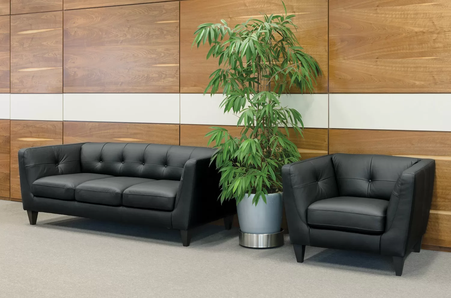 ВОЛЬТА/VOLTA Диван 2-мест кожзам+кожа ЧЕРНЫЙ/КОЖА