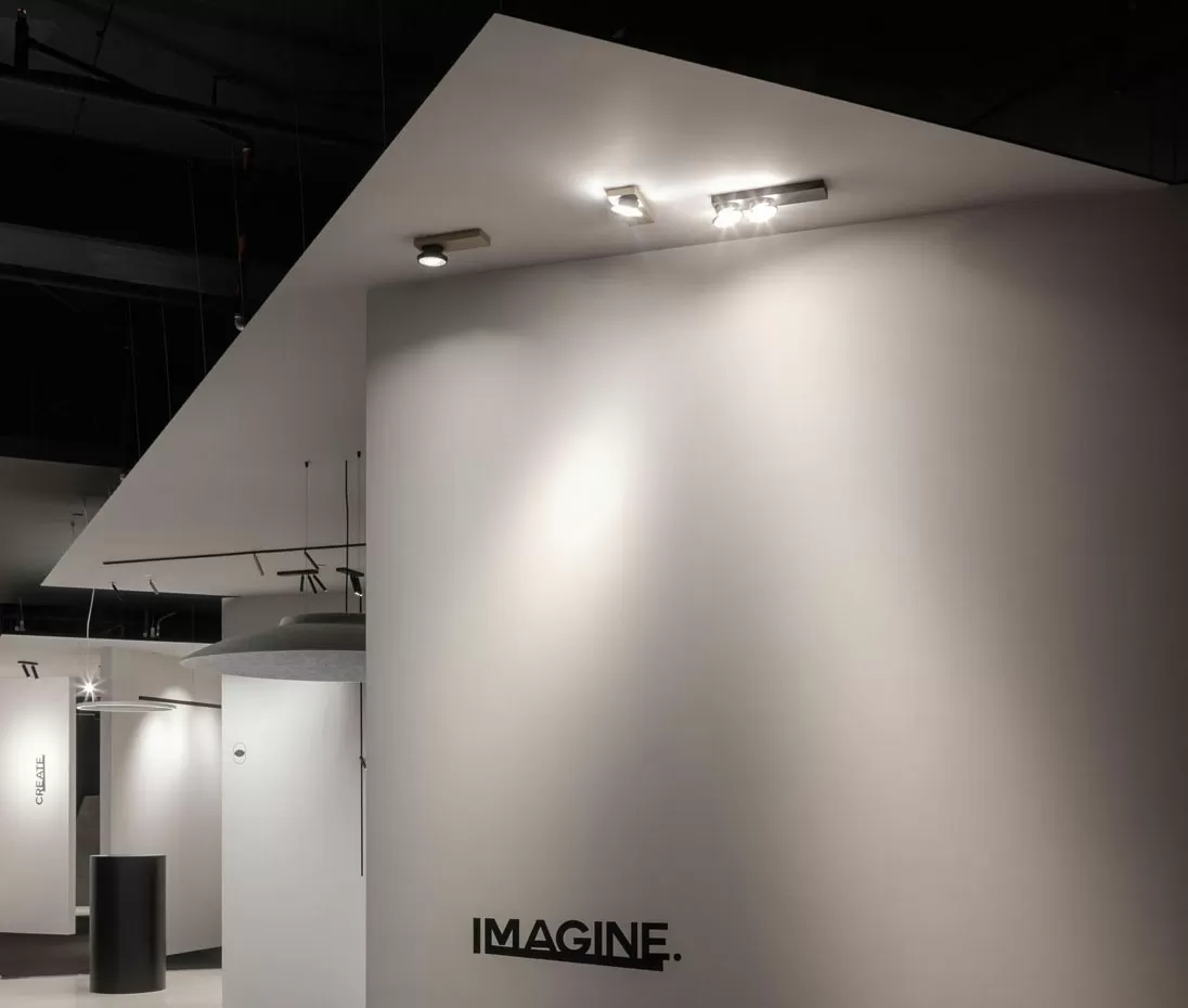 Haloscan — это семейство акцентных полуутопленных светильников для накладного монтажа. Кроме того, они доступны в виде модулей на магнитных профилях. В изделиях Haloscan используется плоская оптика, и ультраминималистичный внешний вид сочетается с приятным световым эффектом. Свет мягко распределяется плоской линзой, создавая до 4х различных углов луча, от точечного до заливающего и даже линейного. Для плавного поворота и наклона в светильниках Haloscan используется система Ex-Centric Rotation System — асимметричный шарнир, сочетающий в себе функции поворота и наклона одним быстрым движением.