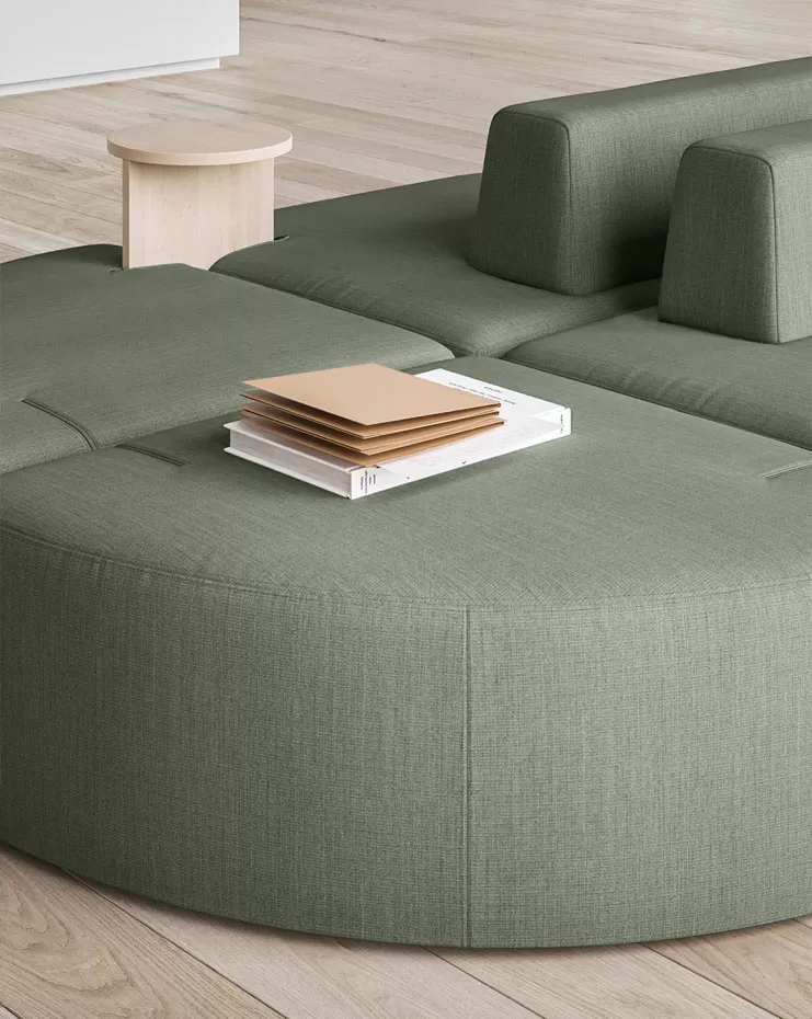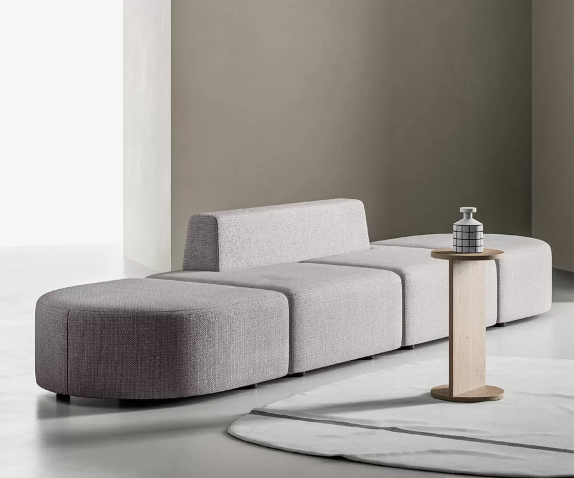 Лаконичный, минималистичный дизайн позволяет легко комбинировать отдельные модули, формируя геометрию пространства в зависимости от его назначения и бизнес-задач компании, наилучшим образом соответствуя индивидуальным требованиям заказчика. Широкий ассортимент пуфов различных форм и размеров легко можно комбинировать со спинками, подлокотниками, журнальными столиками и другими аксессуарами. Чехлы полностью снимаются, а отдельные элементы коллекции можно легко отремонтировать и разобрать.