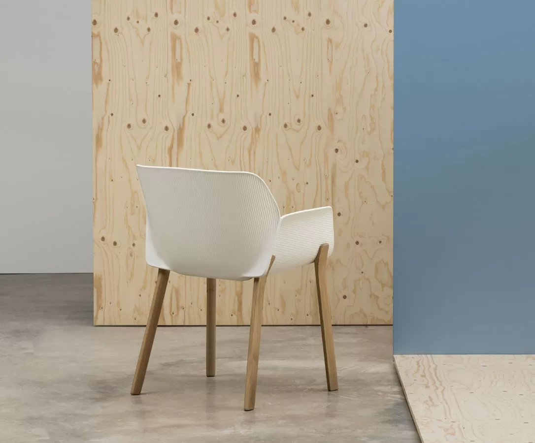 Изготовленное из термополимера природного происхождения ECO®, это кресло обладает уникальной гибкой поверхностью, которая словно нежно обнимает сидящего, обеспечивая идеальную поддержку.