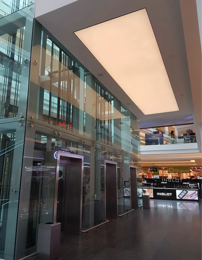 Светодиодные потолки могут применяться во многих сферах, в первую очередь, там, где ценится качество освещения и комфортный свет. Например, в ритейле внешний вид магазина способствует позитивному восприятию бренда. Рассеянный отраженный свет и высокий уровень светового потока уменьшают количество теней, бликов и исключают слепящий эффект, что позволят показать продукт в выгодном свете. Использование светового потолка сокращает количество других осветительных приборов, а естественная цветопередача (CRI > 85) не только создает комфортную атмосферу в помещении, но и не искажает цвета одежды, предметов интерьера, что очень ценится в сфере ритейл. В офисе естественный свет LED-панели создает гостеприимную обстановку и добавляет ощущение открытого пространства. Это снижает степень утомления от работы и улучшает восприятие интерьера. Однородное освещение может оказаться эффективным и в общественных местах, таких как холлы, выставочные залы, музеи, приемные и аэропорты. Рассеянный естественный свет поможет создать спокойную расслабляющую атмосферу и снизить уровень стресса.