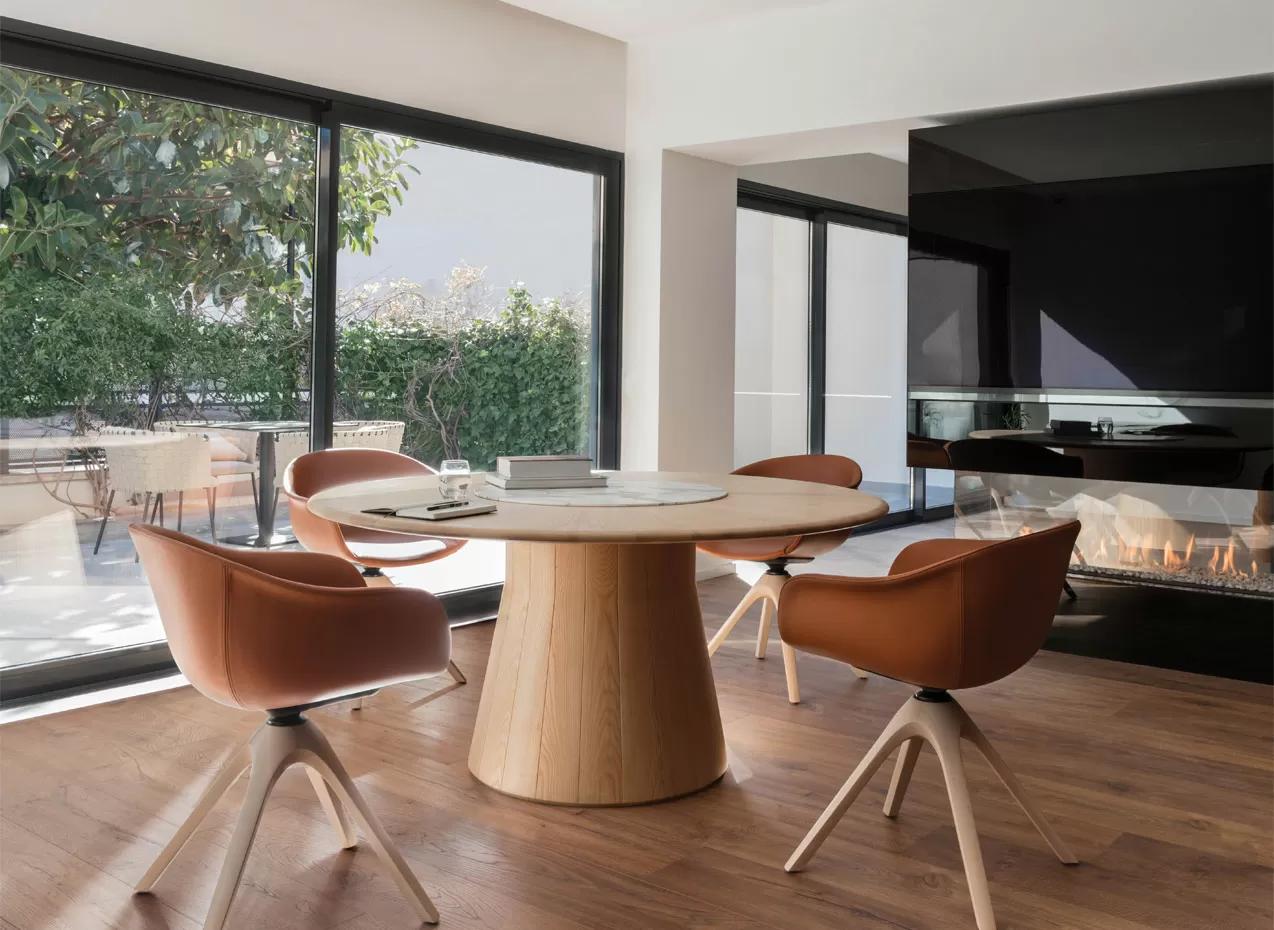 Особое внимание стоит уделить основанию стола, которое выполнено из экологичного термополимера, который поддается 100% переработке. Компания Andreu World активно заботится об экологии, разрабатывая инновационные материалы и следуя принципам циркулярной экономики.