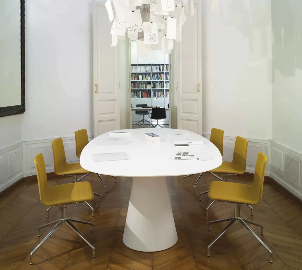 Reverse Conference — это универсальный стол, подходящий для решения различных бизнес-задач. Благодаря множеству конфигураций, размеров и вариантов цветов и материалов эта коллекция идеально вписывается в любые пространства, будь то переговорная комната или кафетерий, офисное или жилое помещение.