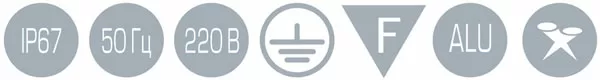 Линзы из ударопрочного поликарбоната закрыты каленным прозрачным стеклом толщиной 3 мм. Доступные углы светорассеивания — 10°/30°/60°.
