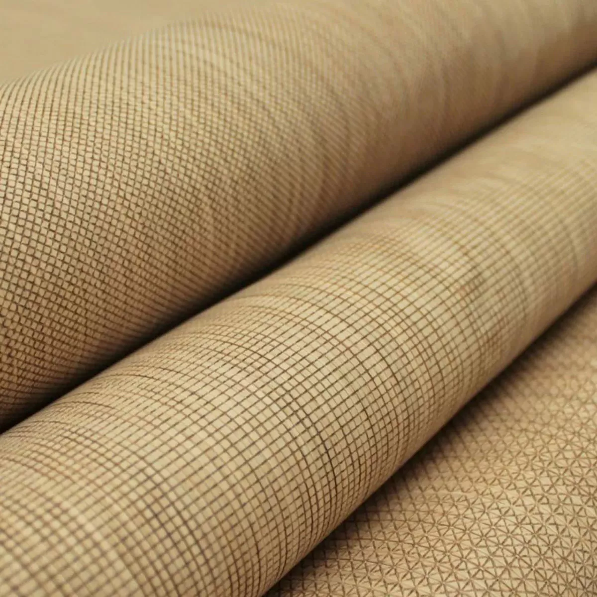 При создании шпонированной ткани используется высококачественный шпон, полученный исключительно из экологически чистого лесного сырья. Слои натуральной древесины толщиной 0,5 мм аккуратно приклеиваются к текстильной основе и обрабатываются лазером, что придаёт поверхности дополнительную гибкость. Материал можно защитить слоем лака или масла, а также окрасить обычными красками для дерева с помощью валика или распылителя.