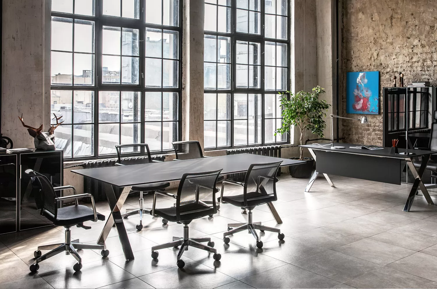 АНКОНА/ANCONA Стол для переговоров ЧЕРНЫЙ/ХРОМ