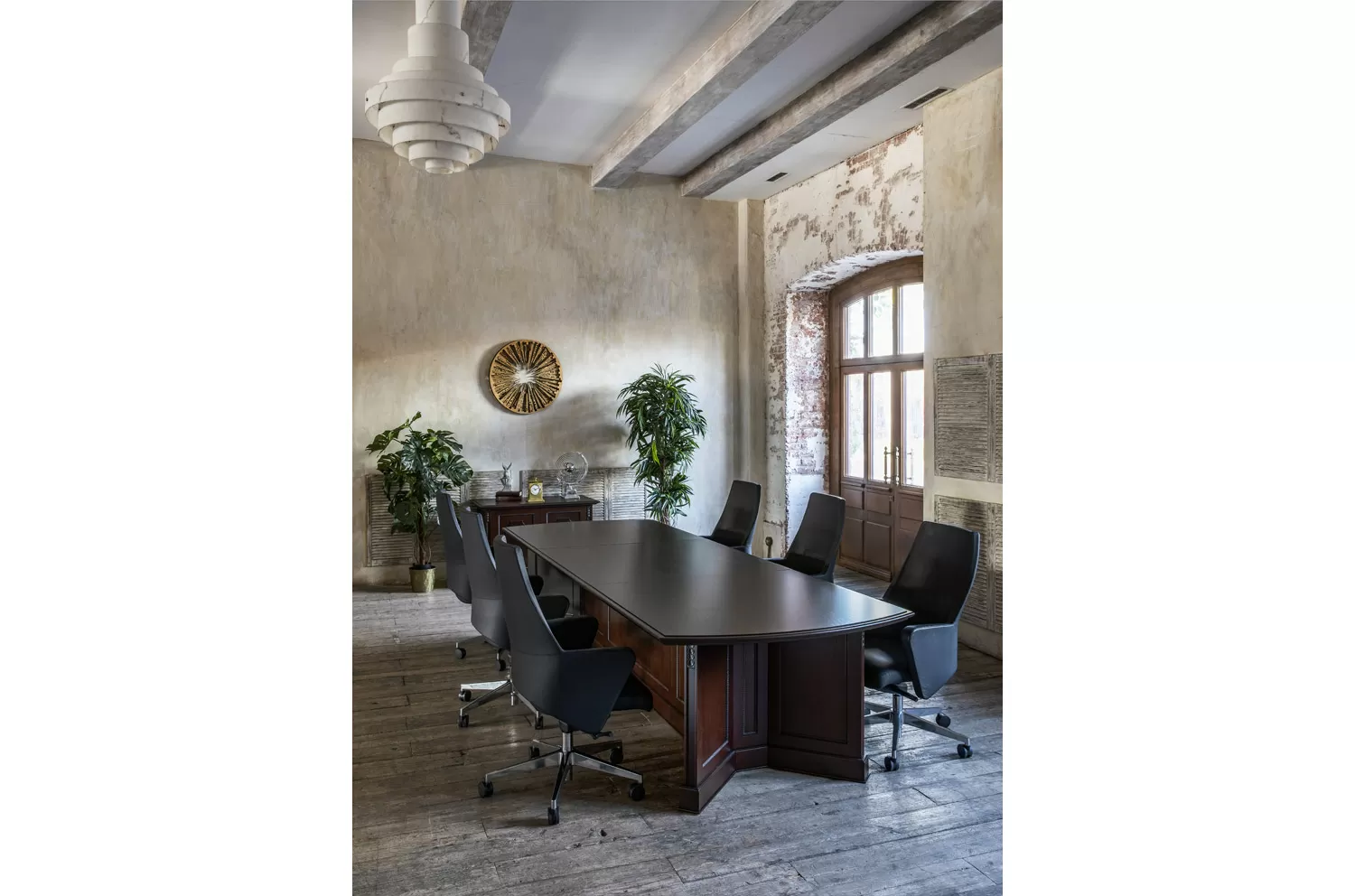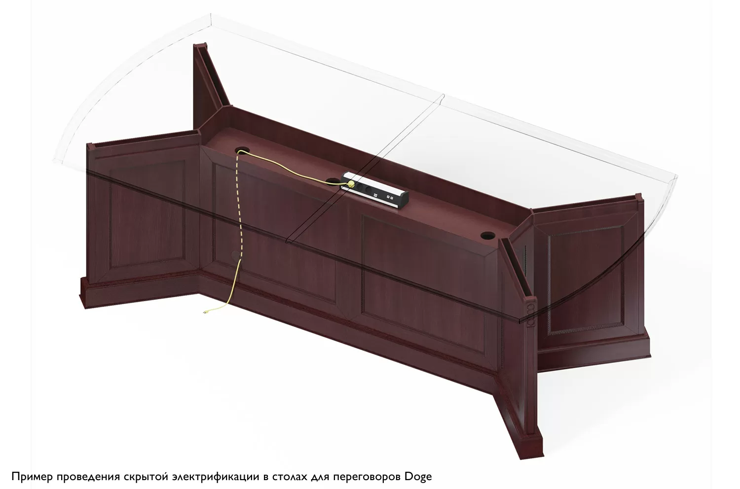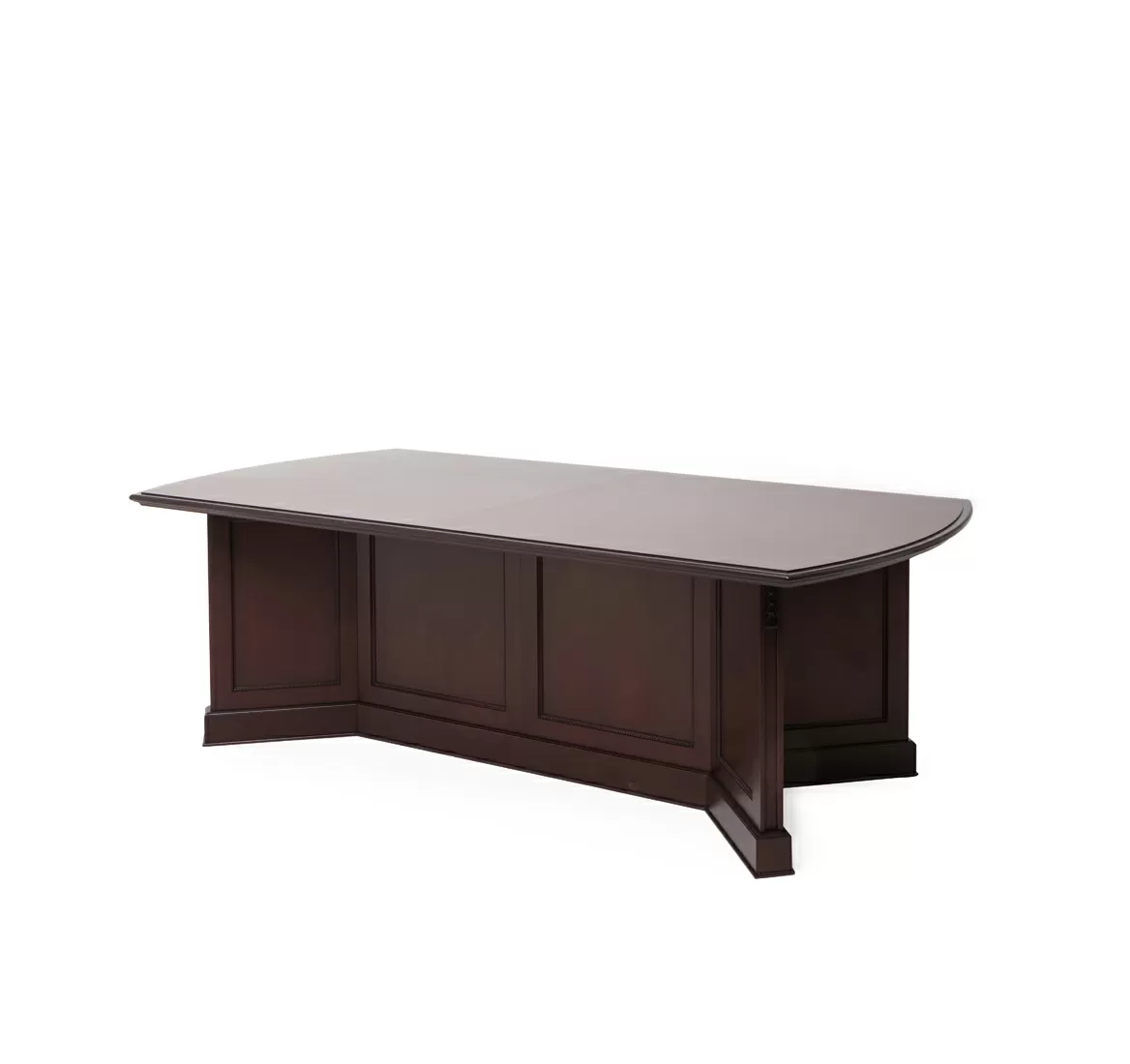 Переговорный стол Дож — главный аргумент в пользу статуса, профессионализма и продуманного подхода к бизнесу. Глубокий цвет ореха Танганьика и рельефная резьба делают интерьер похожим на кабинет с богатой историей. Его элегантные линии и сдержанный дизайн создают атмосферу уверенности и уважения, необходимую для заключения выгодных сделок. Скрытый кабель-менеджмент поддерживает идеальный порядок и исключает хаос во время совещаний.
