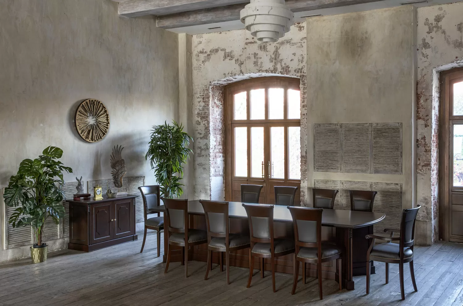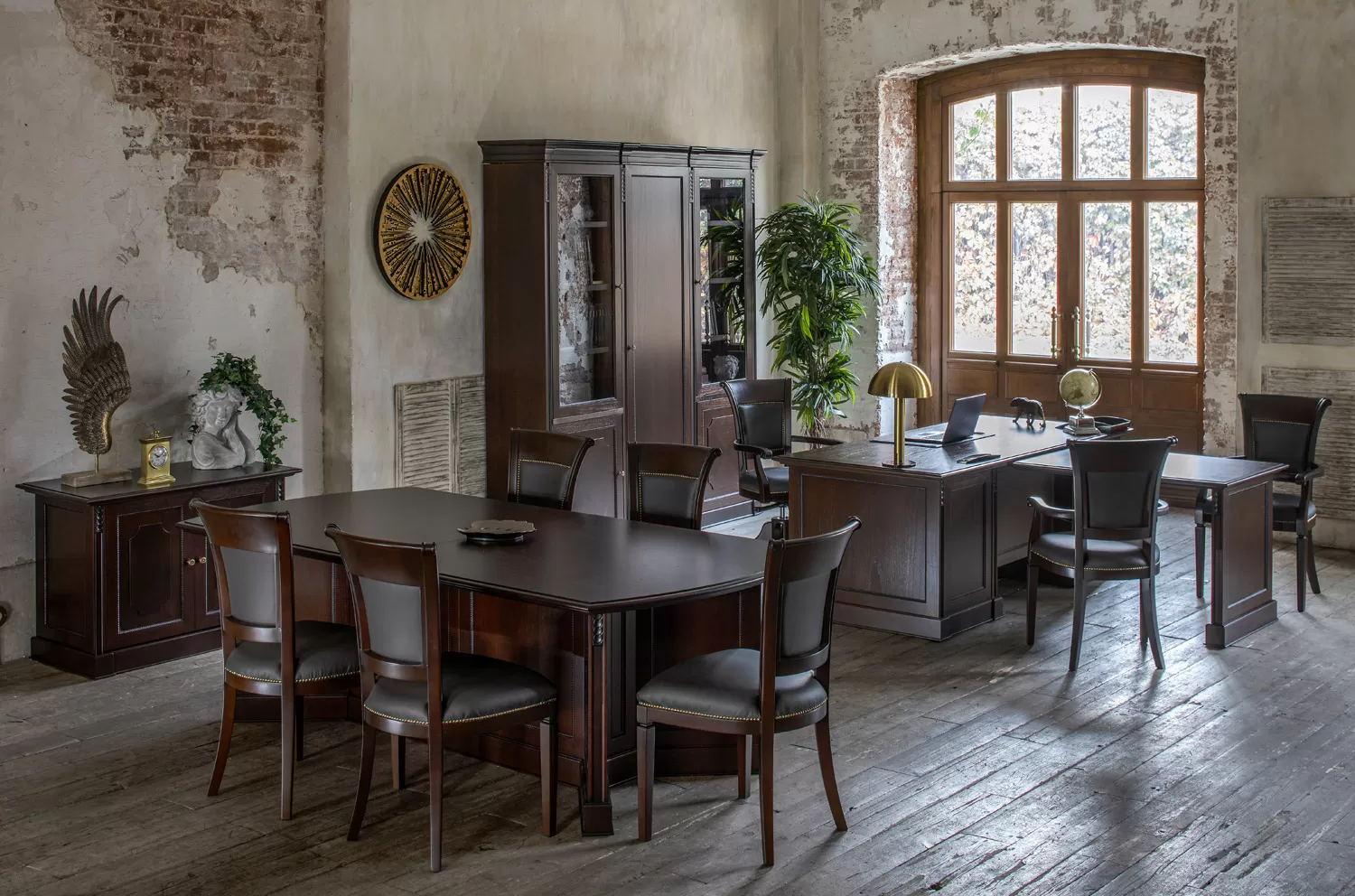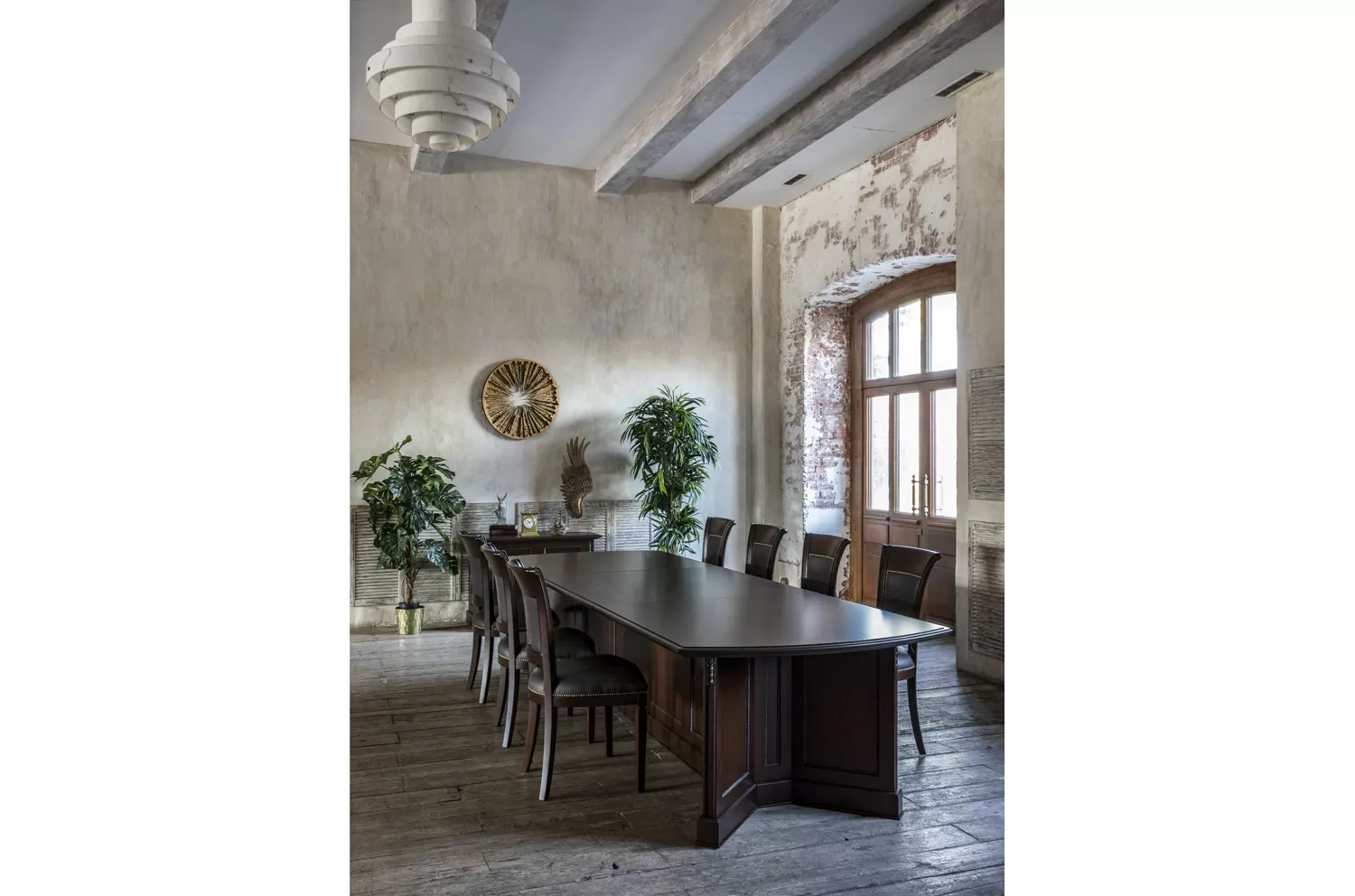 Переговорный стол Дож — главный аргумент в пользу статуса, профессионализма и продуманного подхода к бизнесу. Глубокий цвет ореха Танганьика и рельефная резьба делают интерьер похожим на кабинет с богатой историей. Его элегантные линии и сдержанный дизайн создают атмосферу уверенности и уважения, необходимую для заключения выгодных сделок. Скрытый кабель-менеджмент поддерживает идеальный порядок и исключает хаос во время совещаний.