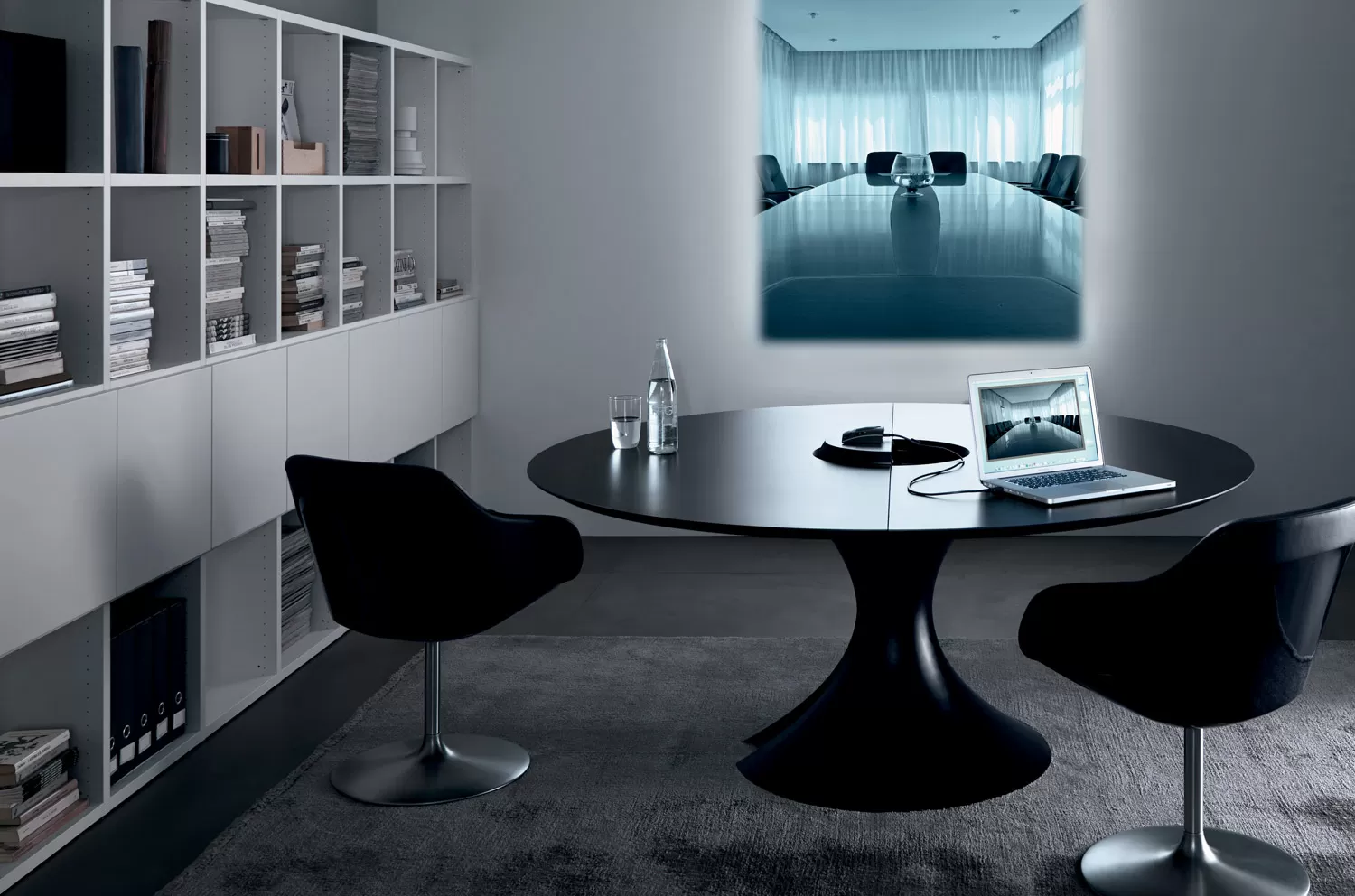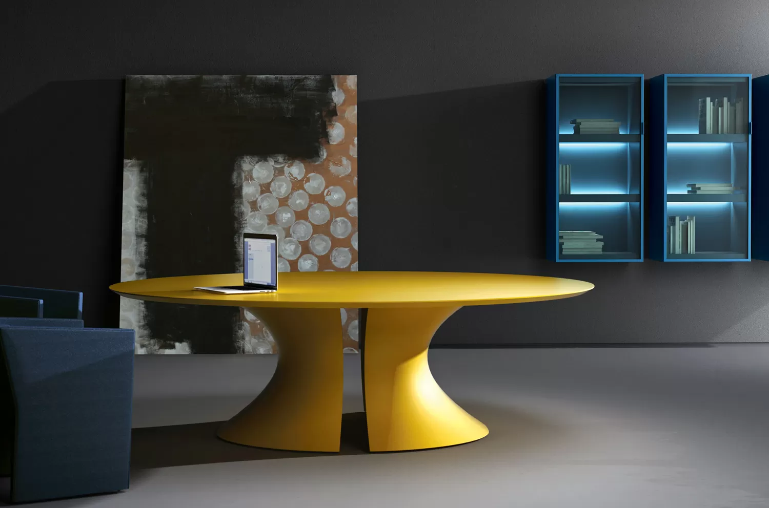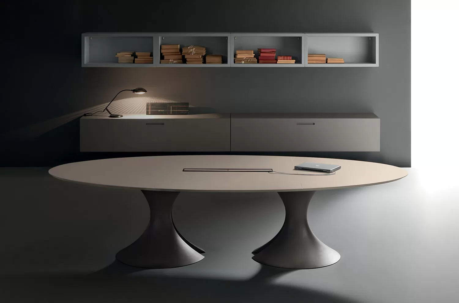 Стол для переговоров Ола от Martex — элегантность, функциональность и безупречный стиль, созданный итальянским дизайнером Марио Маццером. База стола имеет сквозное отверстие центральной части для удобного размещения проводов электрификации. Белые глянцевые опоры выполнены из Cristalplant® — композитного материала, позволяющего создавать формы, недоступные для керамики или натурального камня. Бархатистая текстура — ключевая особенность материала.