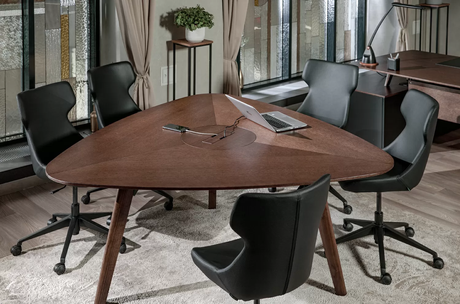 РЭЙЛ/RAIL Стол д/переговоров треуг. ДУБ ТАБАК