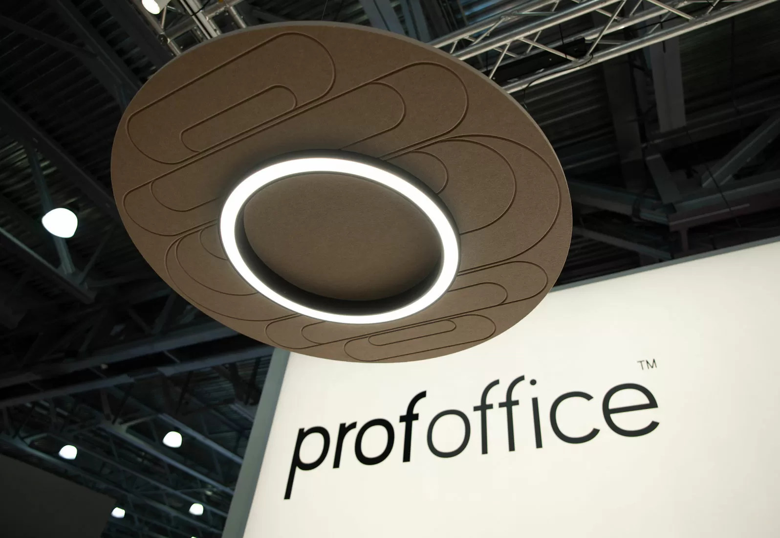 Обрамлением экспозиции послужило масштабное световое полотно — продукт, созданный специально к выставке и демонстрирующий потенциал нашего светотехнического департамента. Представленные потолочные подвесные светильники стали воплощением синтеза акустики и эргономики света. Цветовая температура 4000K обеспечивает естественное нейтрально-белое освещение, идеальное для рабочих и общественных пространств: оно не утомляет глаза и поддерживает высокую концентрацию внимания.