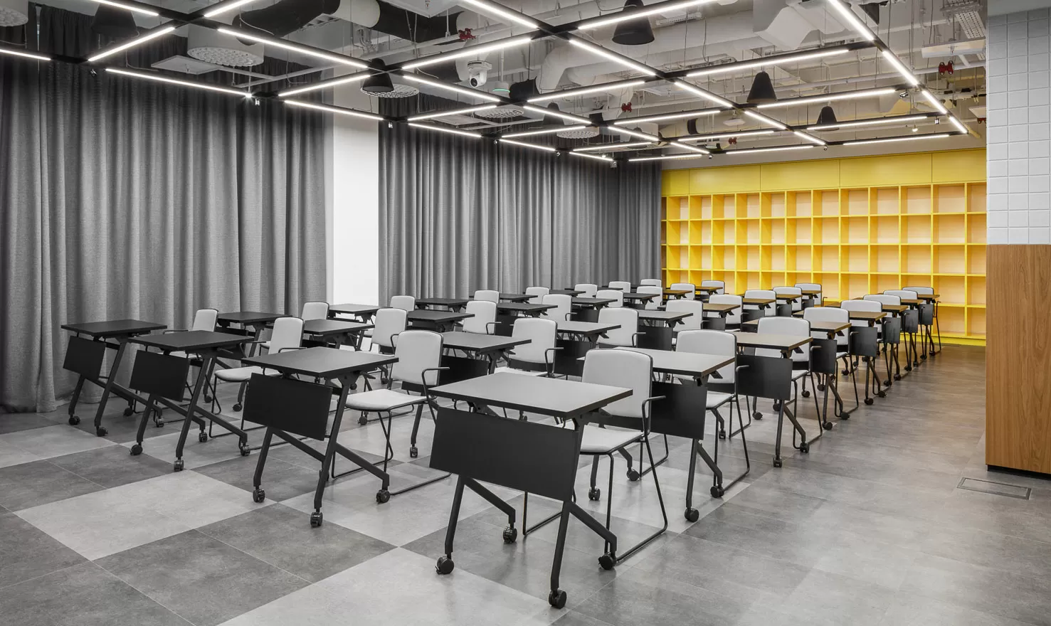 Пространство рассчитано на 60 рабочих мест и 465 учебных мест, включая 44 аудитории, 12 трансформируемых лекционных залов, коворкинги, профессорские клубы, переговорные, чат-румы, библиотеку, кинозал и спортивные зоны. Мы поставили мебель для различных функциональных зон: от учебных аудиторий и конференц-залов до зон отдыха и кабинетов менеджмента, в том числе кастомизированные решения, мобильную и мягкую мебель.