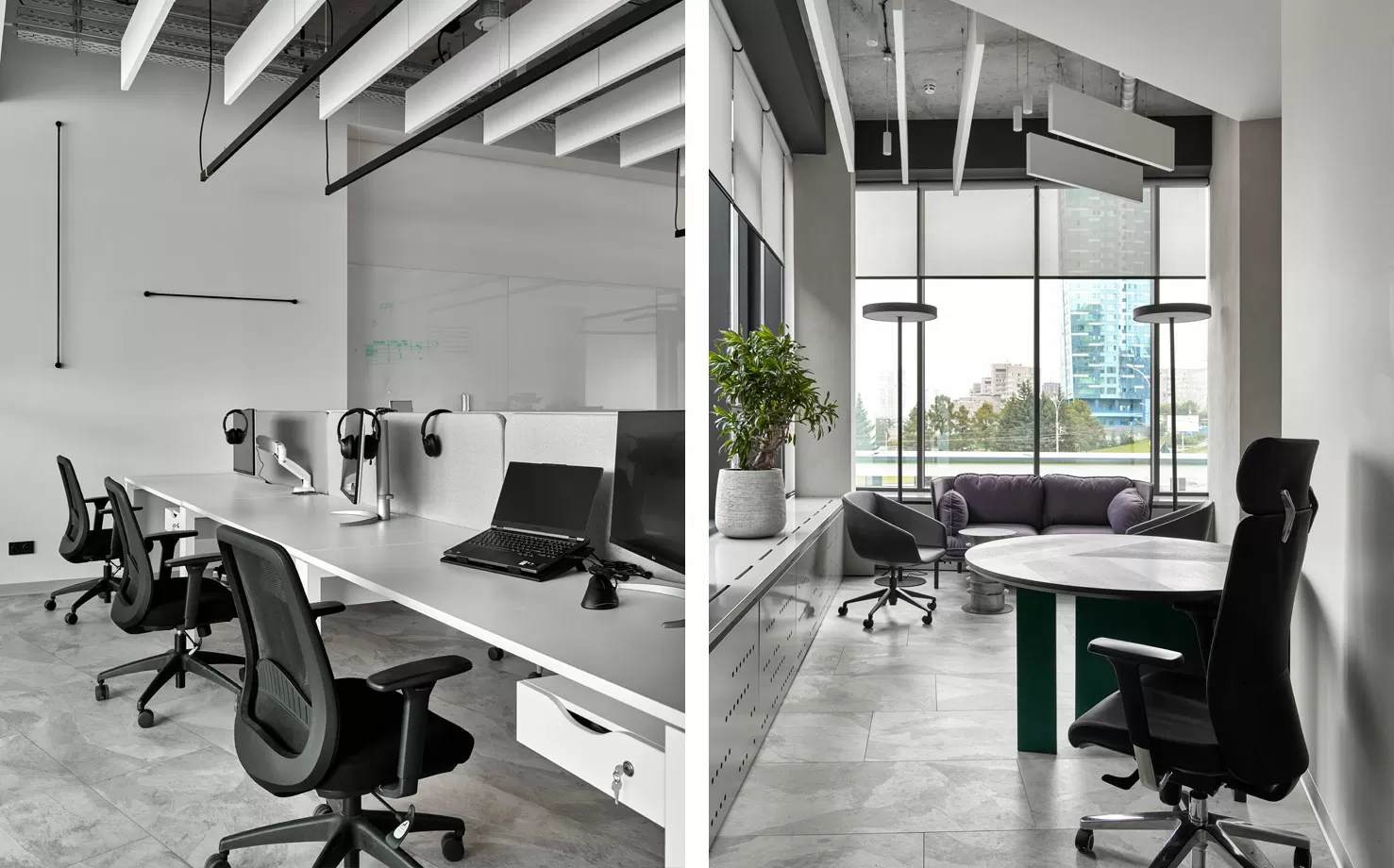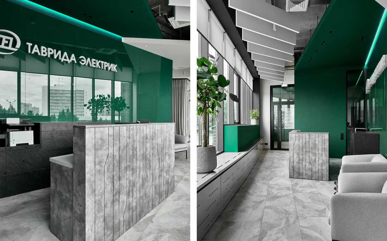 Корпусная мебель индивидуального изготовления, рабочие кресла и мягкая мебель в офисе Таврида Электрик